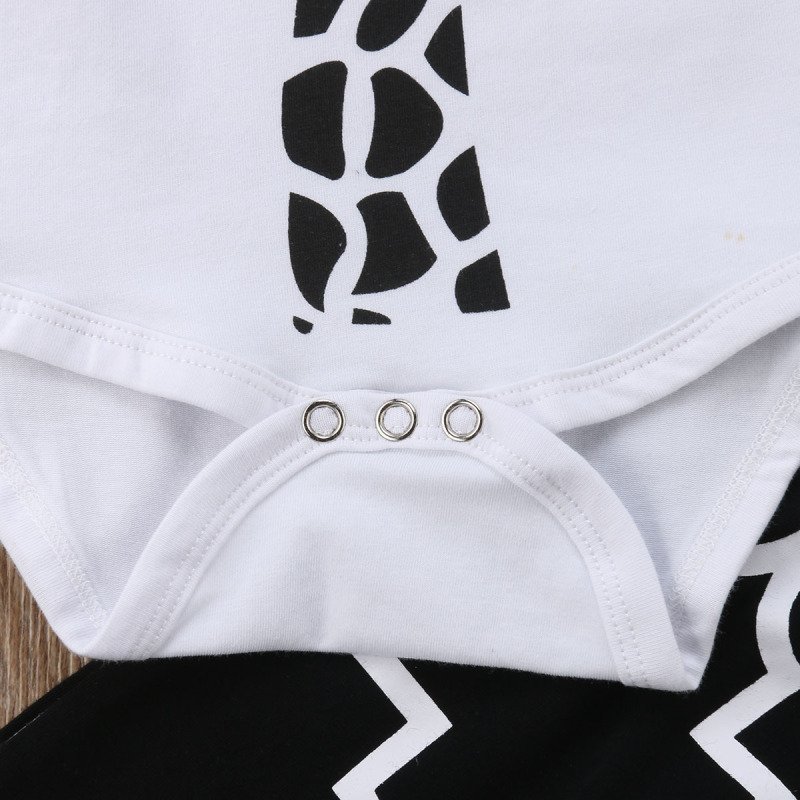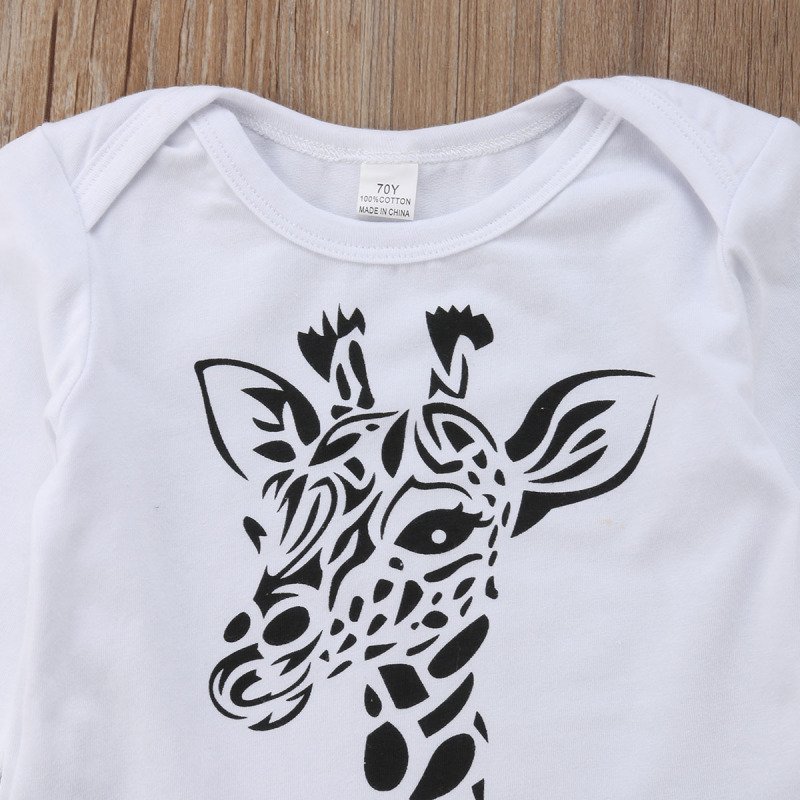 Baby Boys Casual Round Neck Long Sleeves Cartoon Giraffe Romper And Pants With Hat