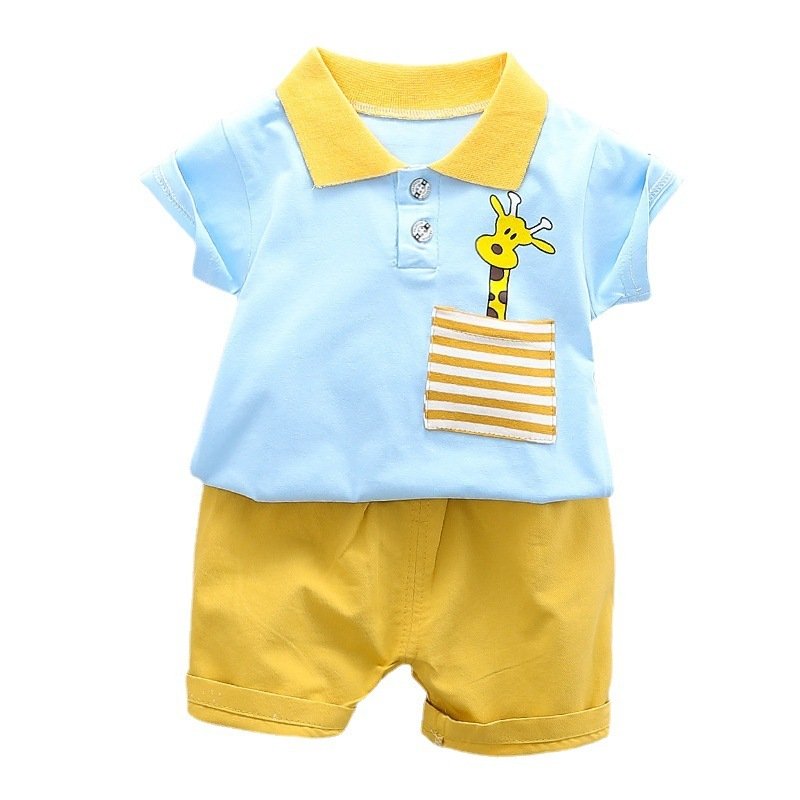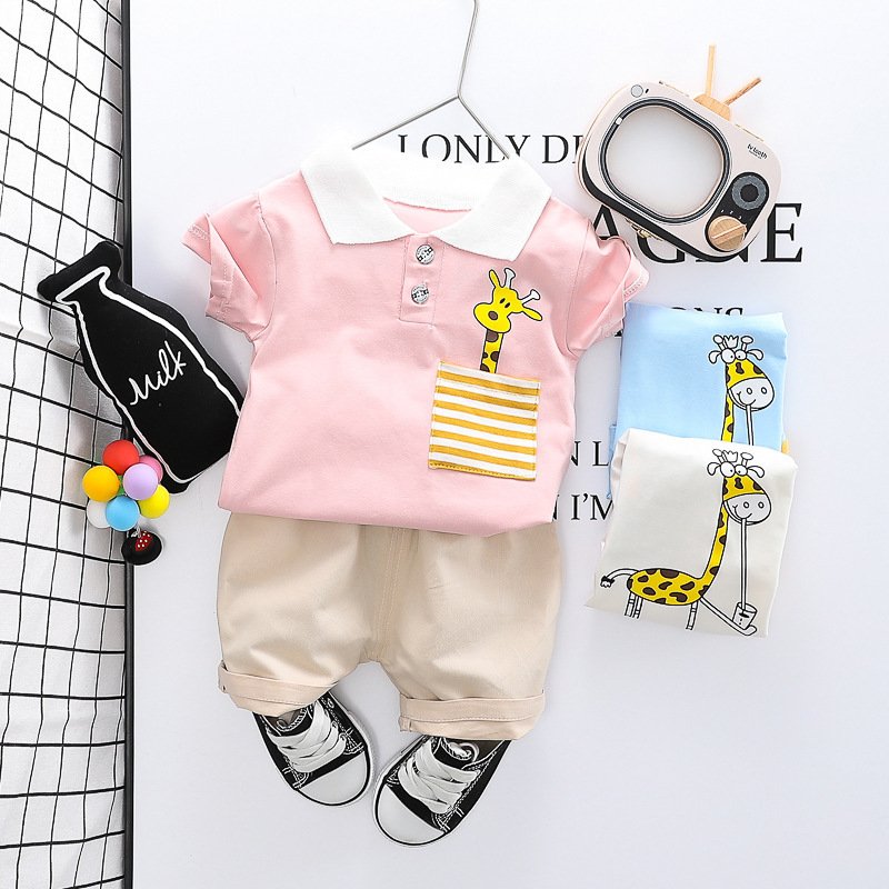 Baby Boys Cute Giraffe Lapel Short Sleeves T-Shirt And Solid Color Shorts Two-piece Set