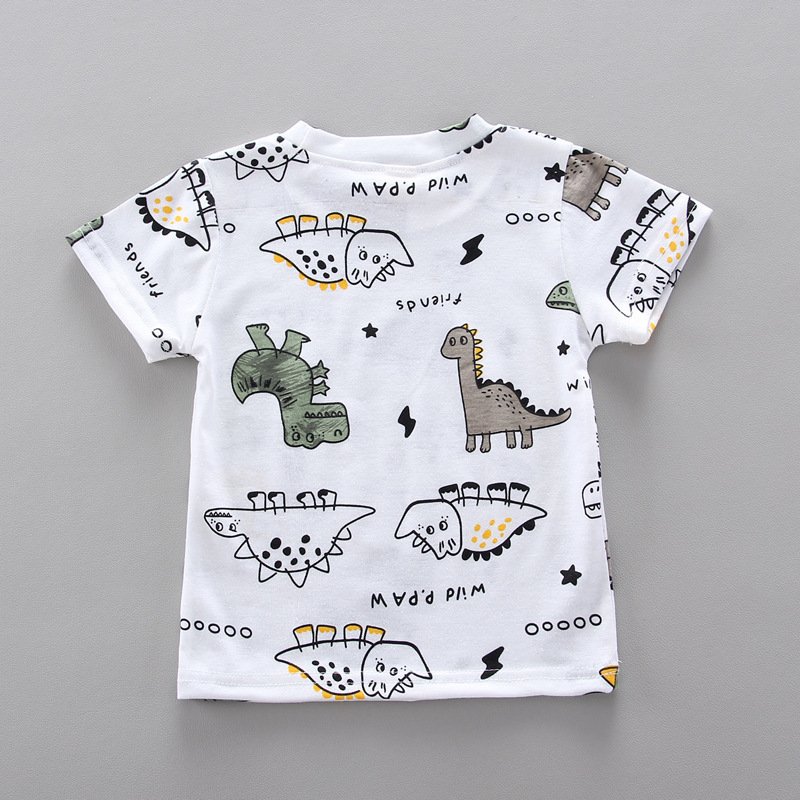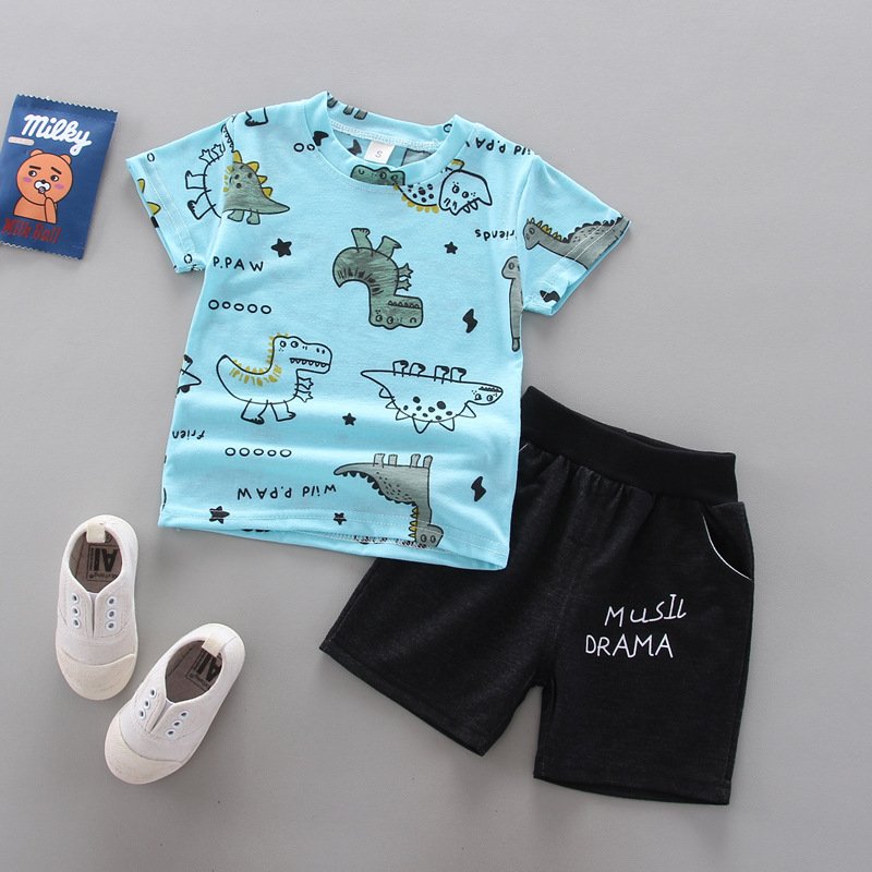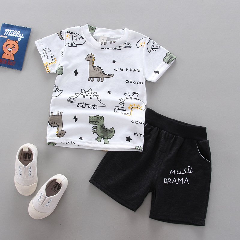 Baby Boys Cute Round Neck Short-sleeved Dinosaur Pattern T-Shirt And Shorts Set
