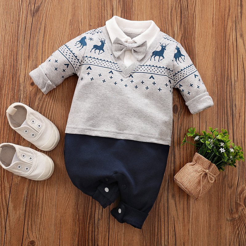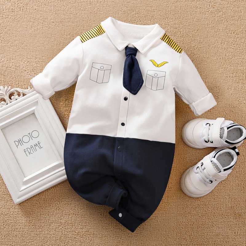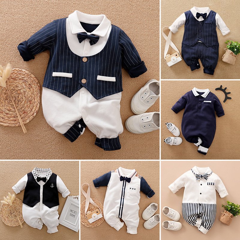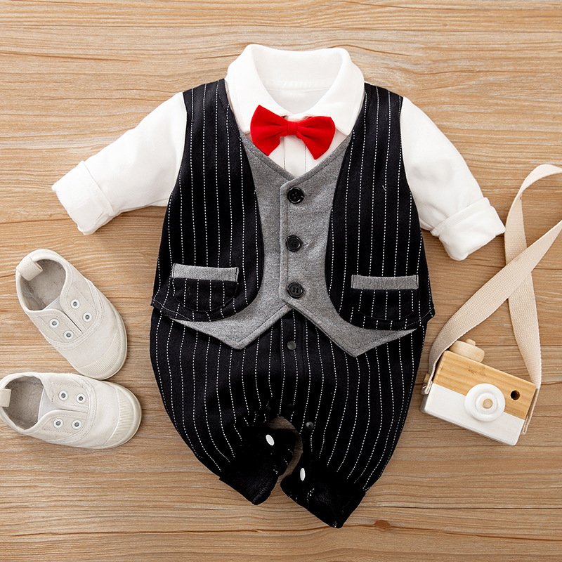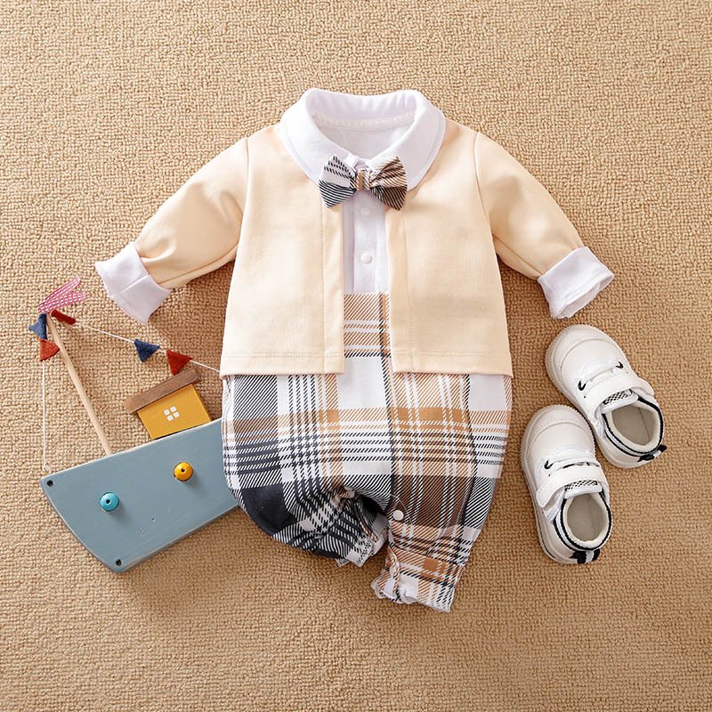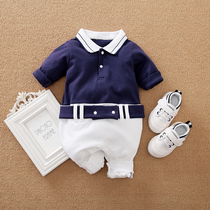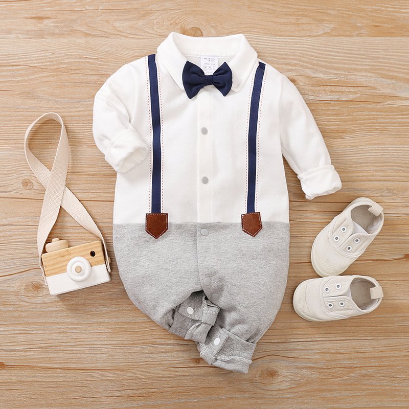 Baby Boys Gentleman Lapel Long Sleeve Jumpsuit