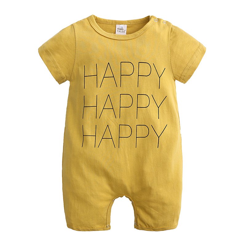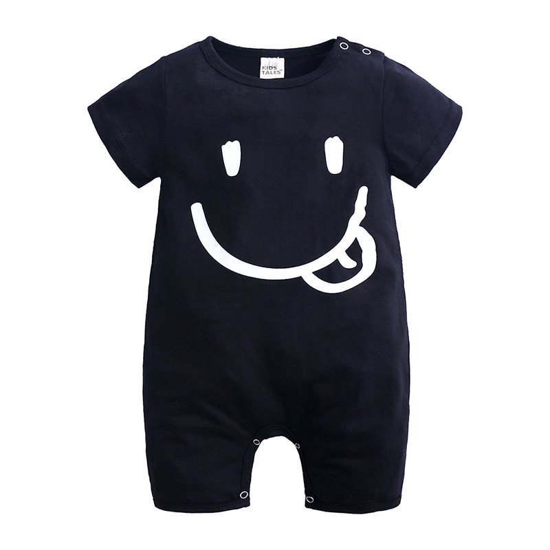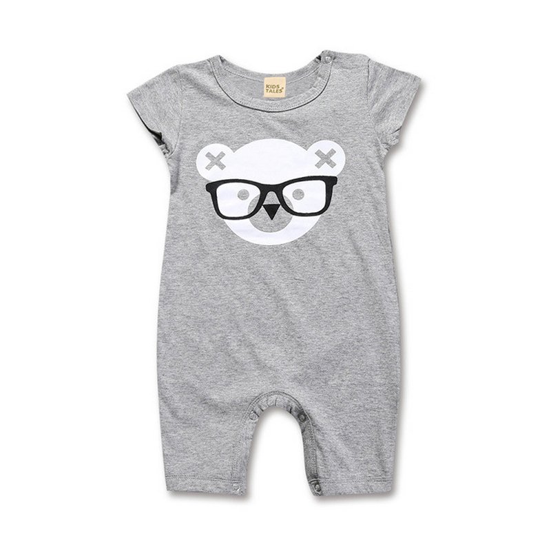 Baby Boys Round Neck Short Sleeve Cartoon Pattern Letter Romper