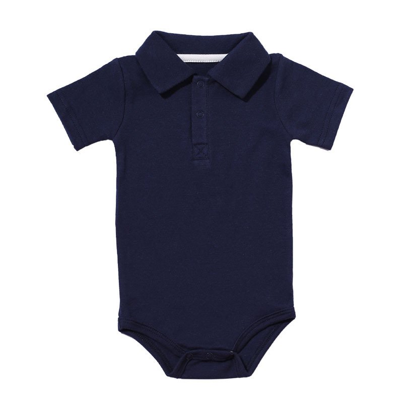 Baby Boys Simple Solid Color Lapel Short Sleeve Romper