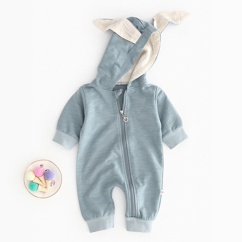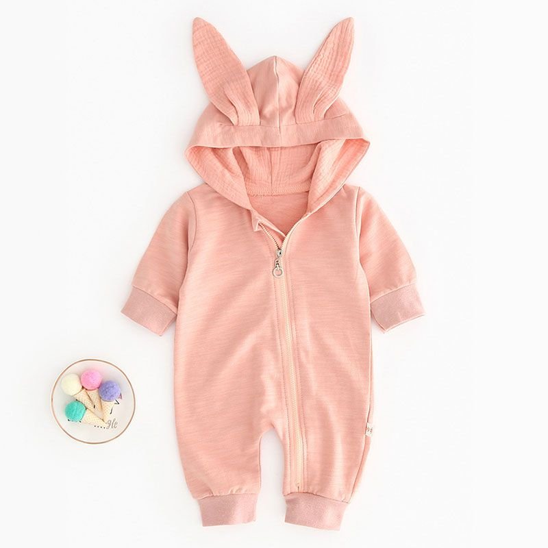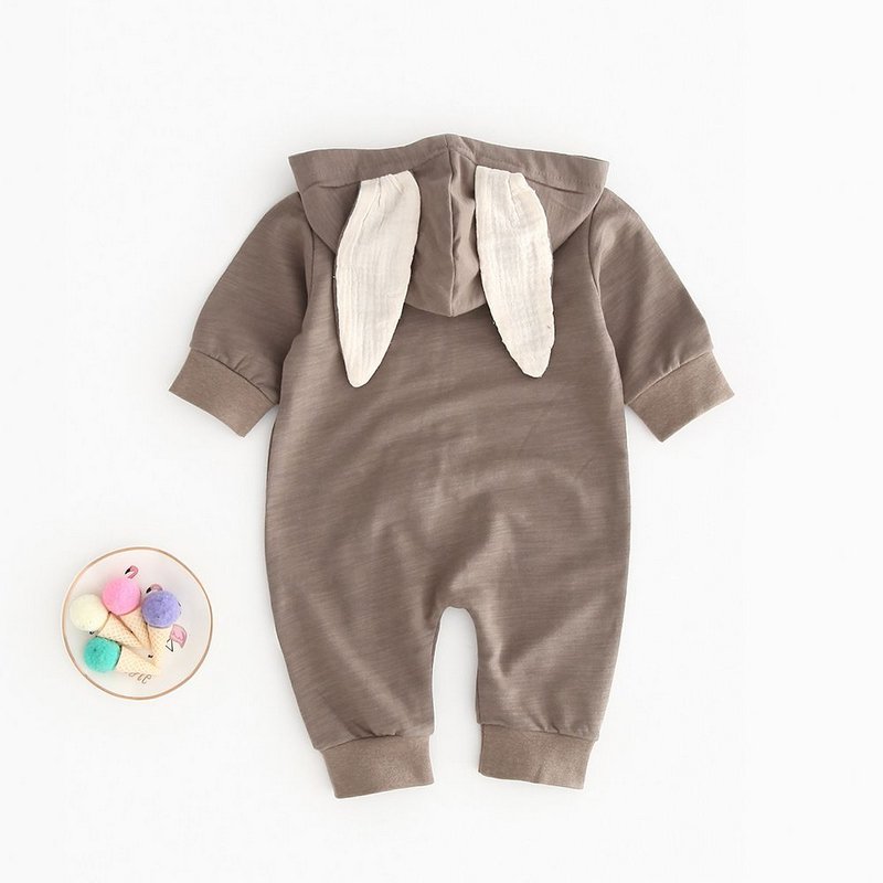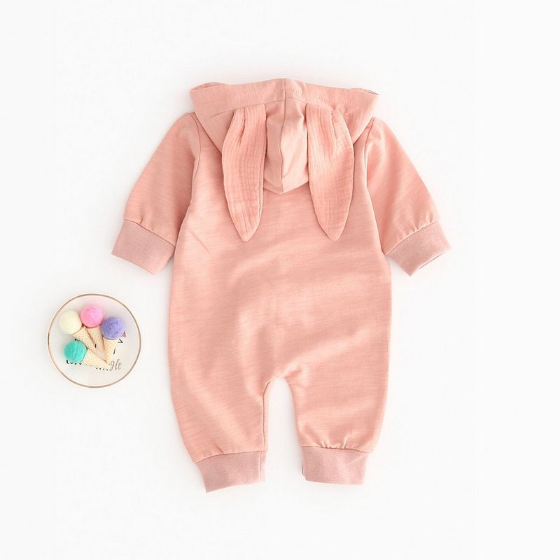 Baby Bunny Ear Design Hooded Pure Color Long-sleeve Jumpsuits
