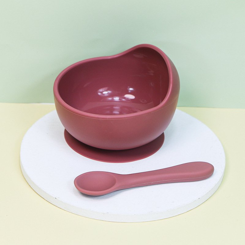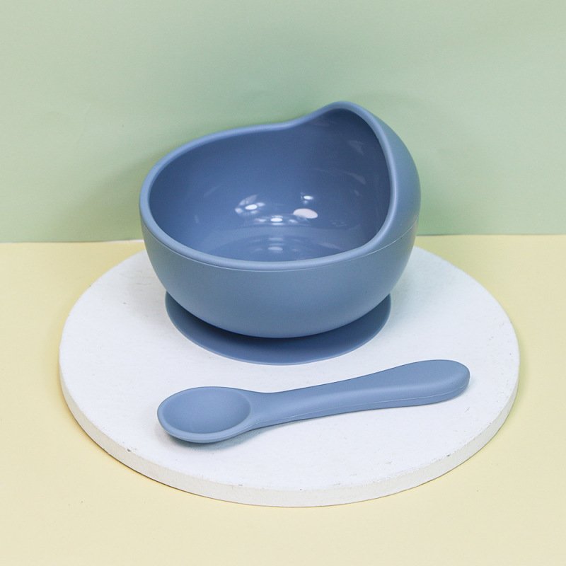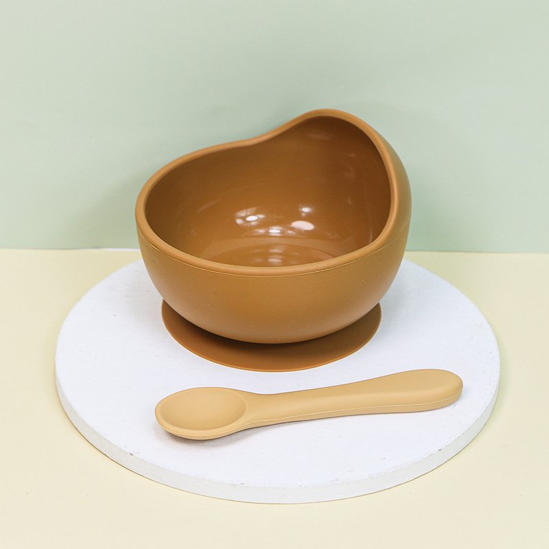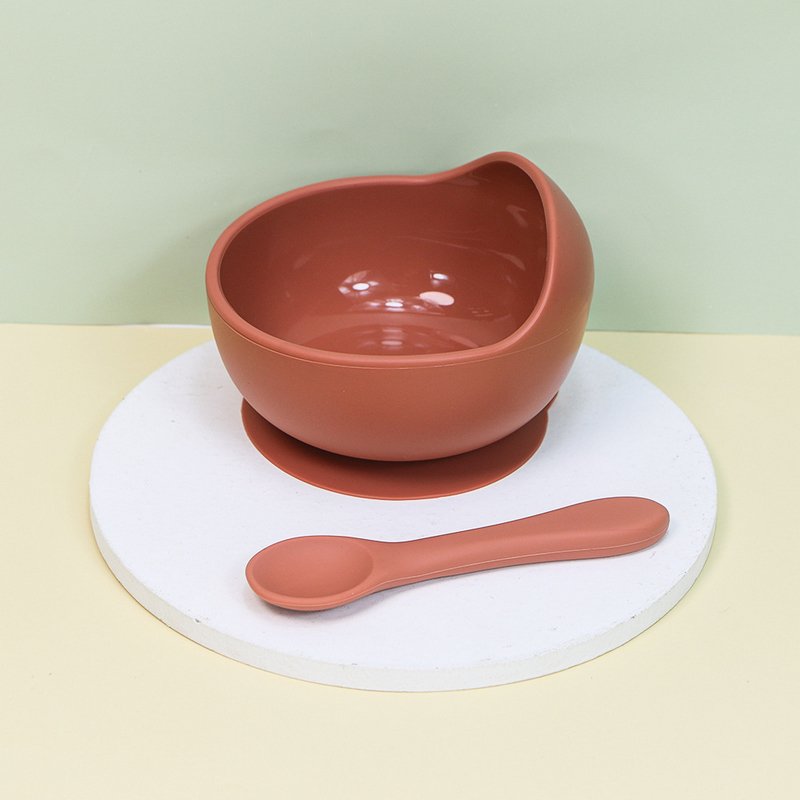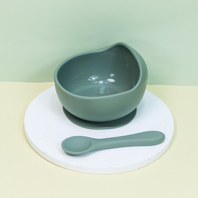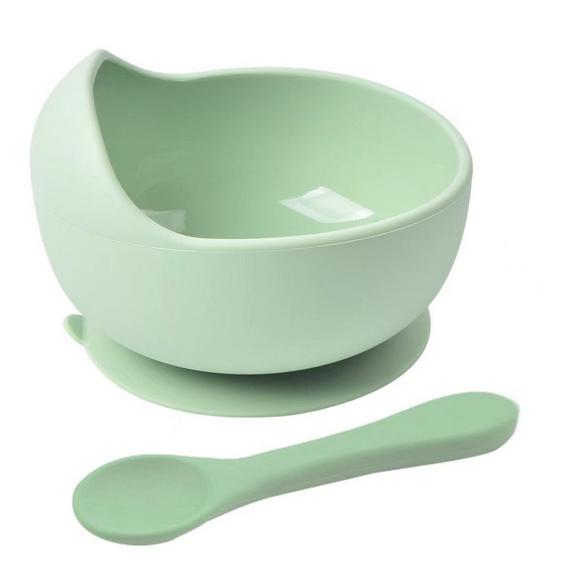 Baby Care Solid Color Silicone Food Bowl Spoon 2 Piece Set