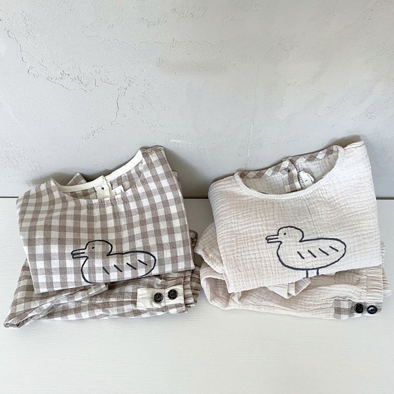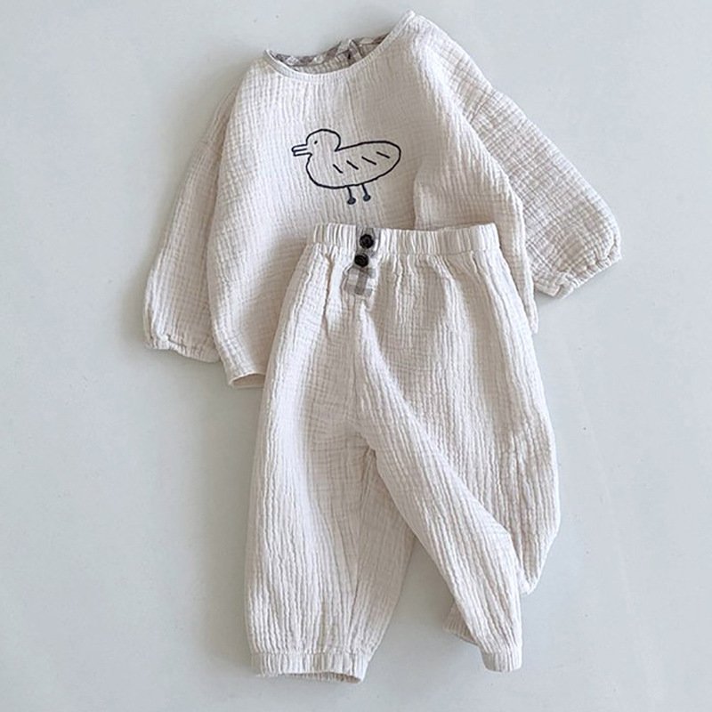 Baby Casual Cartoon Duck Pattern Round Neck Short Sleeve Loose T-Shirt And Elastic Pants Set