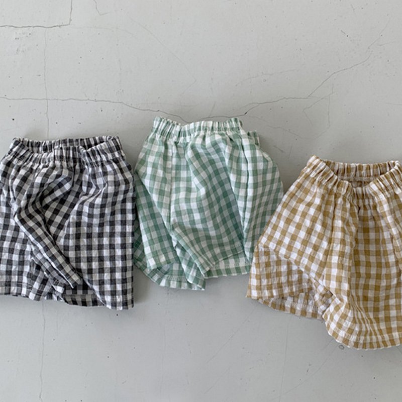 Baby Casual Cartoon Fruit Pattern Round Neck Sleeveless Loose Vest And Elastic Plaid Shorts Set