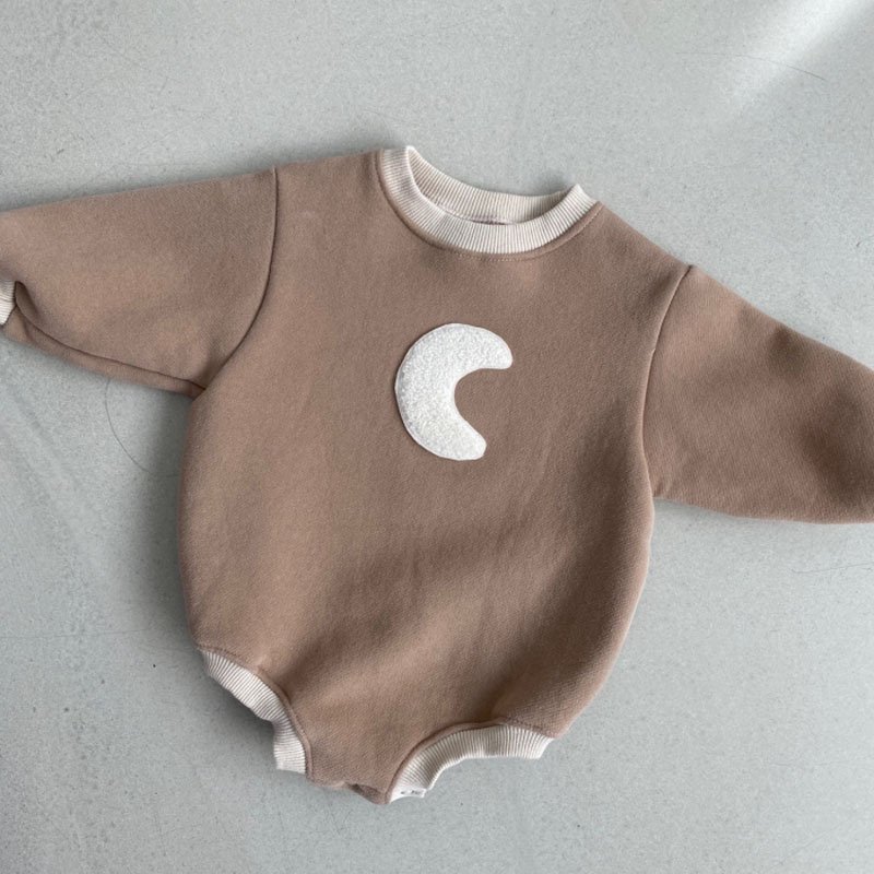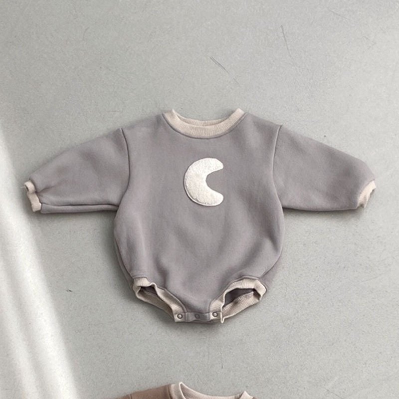 Baby Casual Round Neck Long Sleeve Moon Pattern Romper