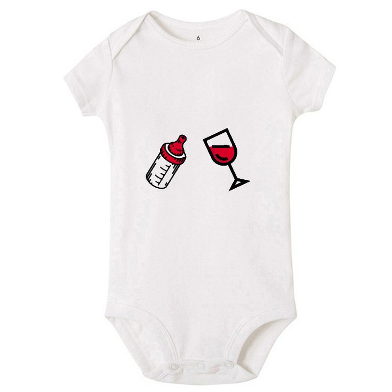 Baby Casual Round Neck Short Sleeve Feeding-bottle Goblet Pattern Romper