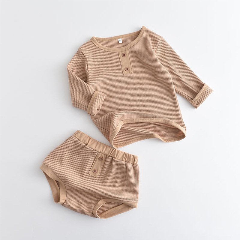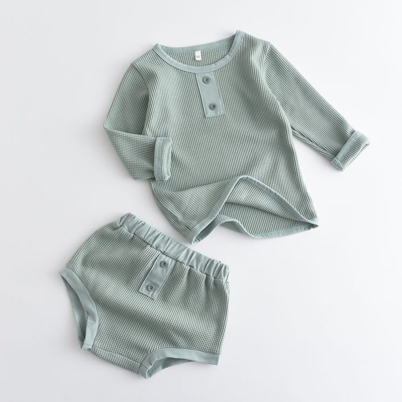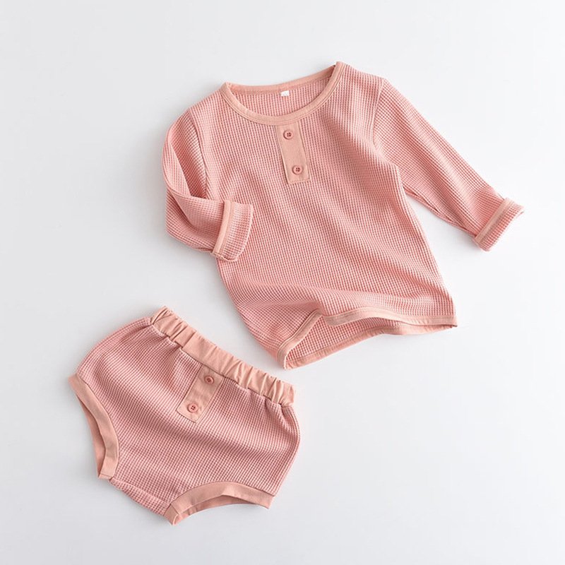 Baby Casual Solid Color Round Neck Long-sleeved Top And Shorts Set
