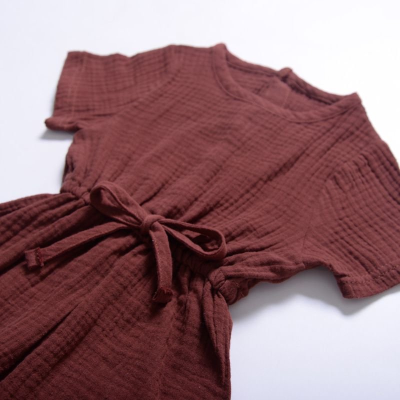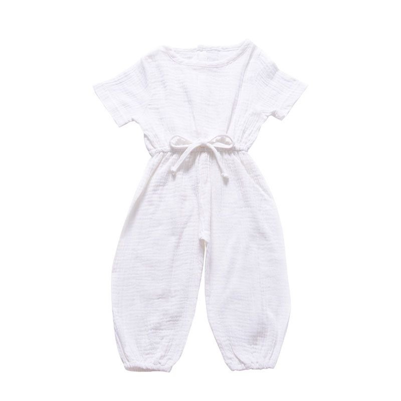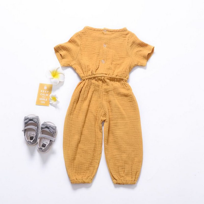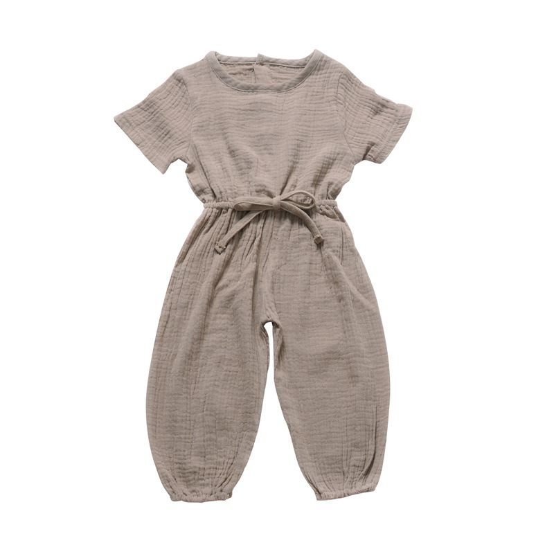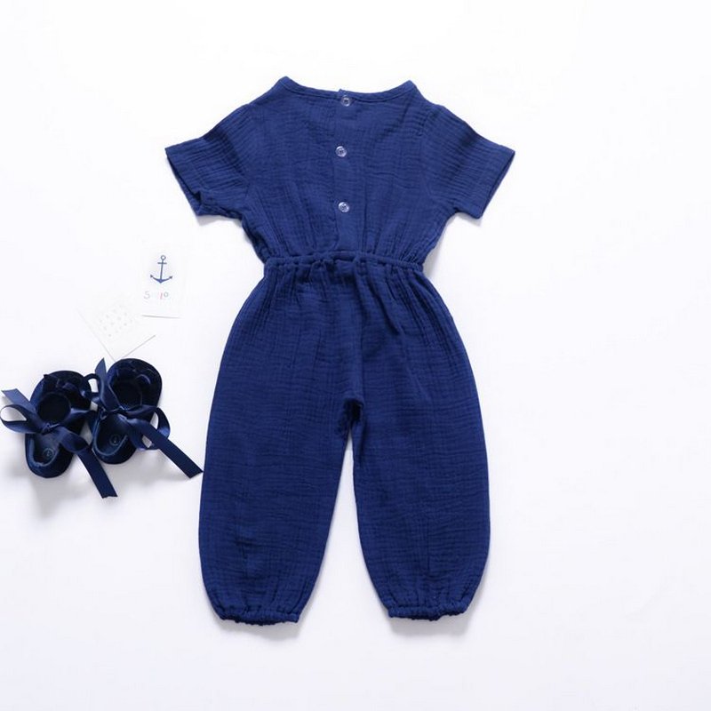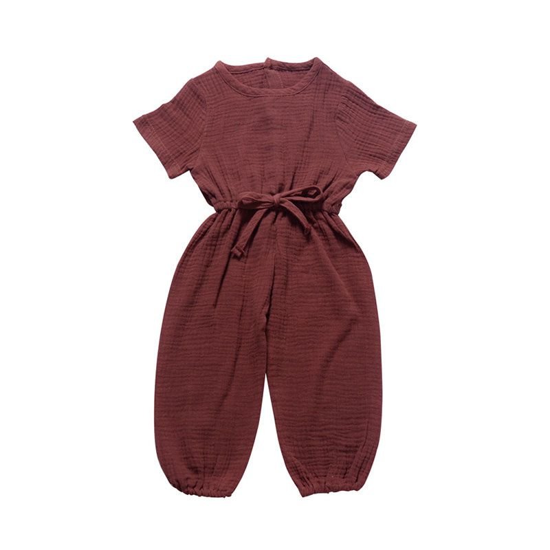 Baby Cotton Solid Color Short Sleeves Casual Jumpsuit