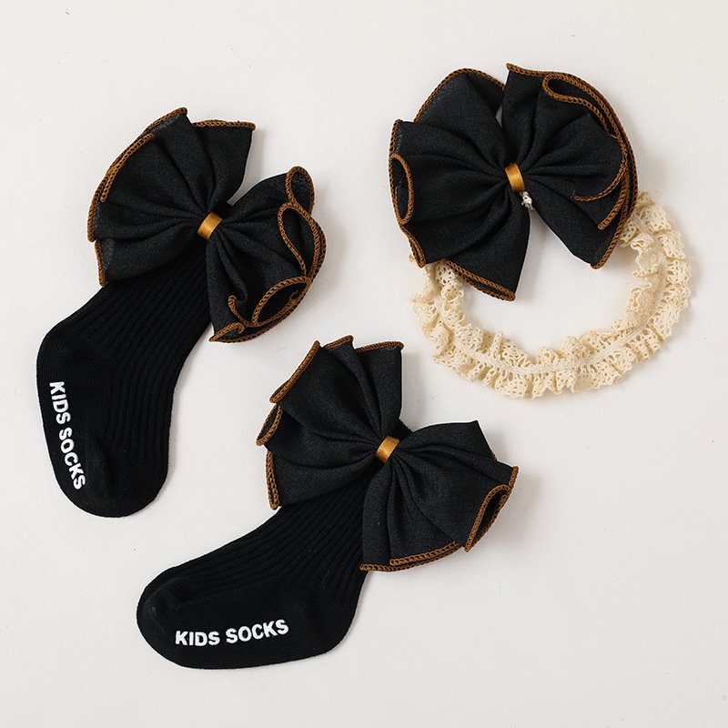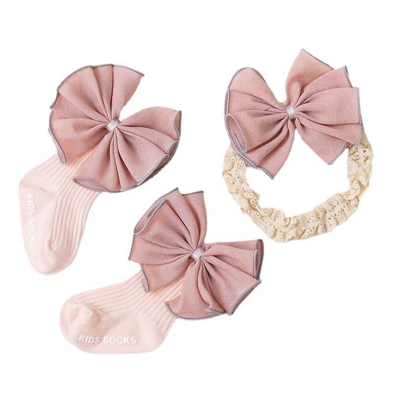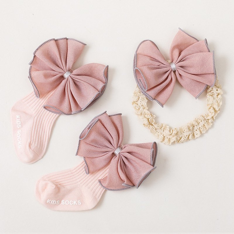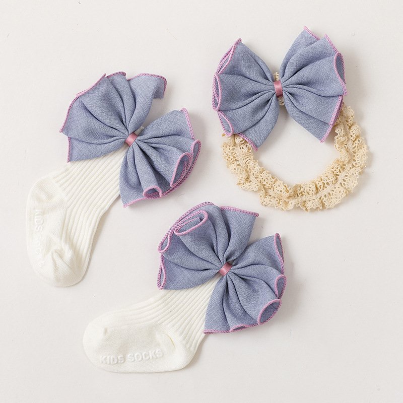 Baby Cute Fashion Hairband Seersucker Bow Socks Set
