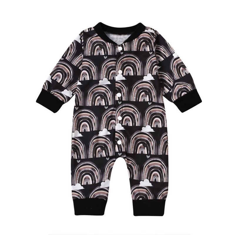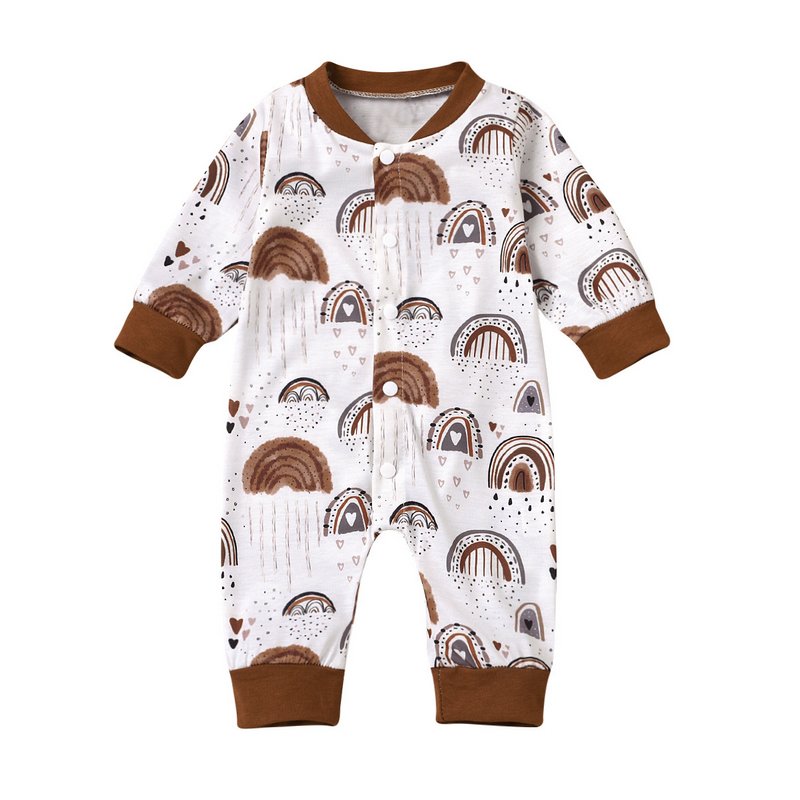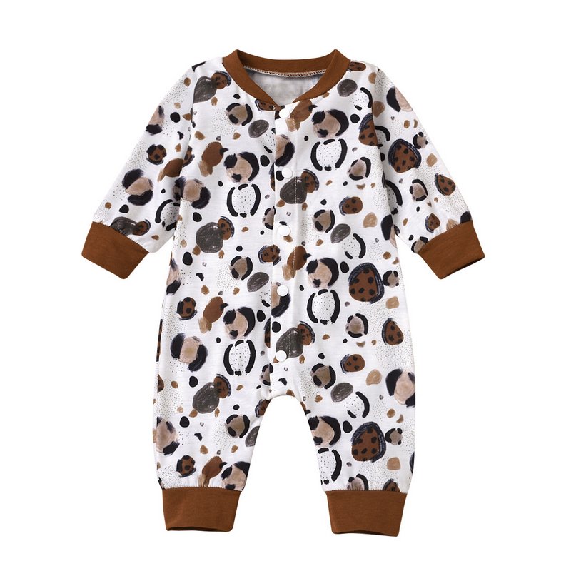 Baby Cute Long Sleeve Single-breasted All Over Print Jumpsuit