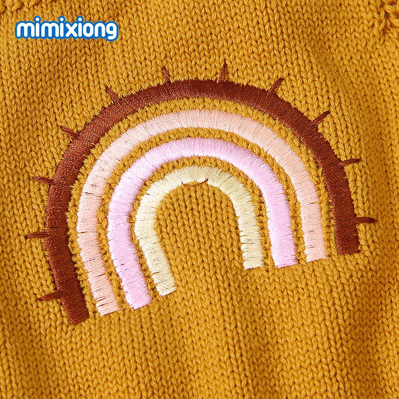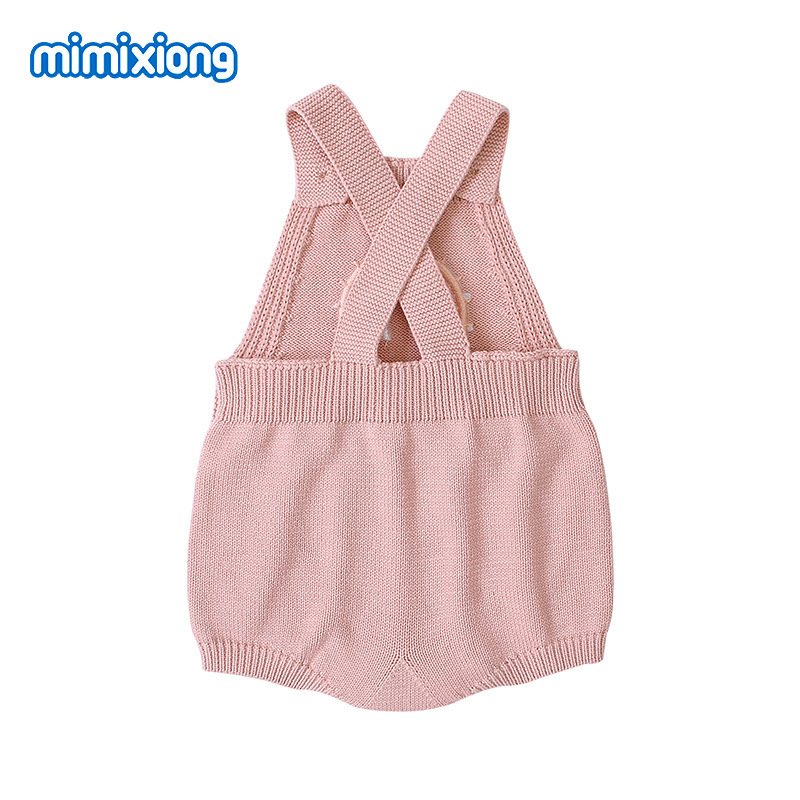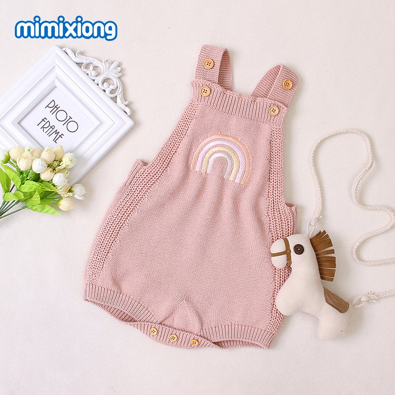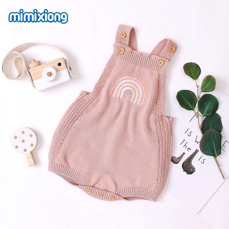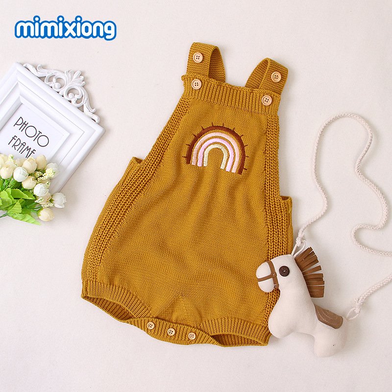 Baby Cute Rainbow Embroidery Knit Backless Sleeveless Romper