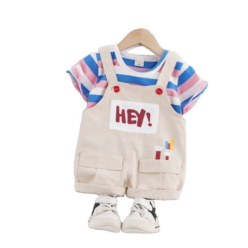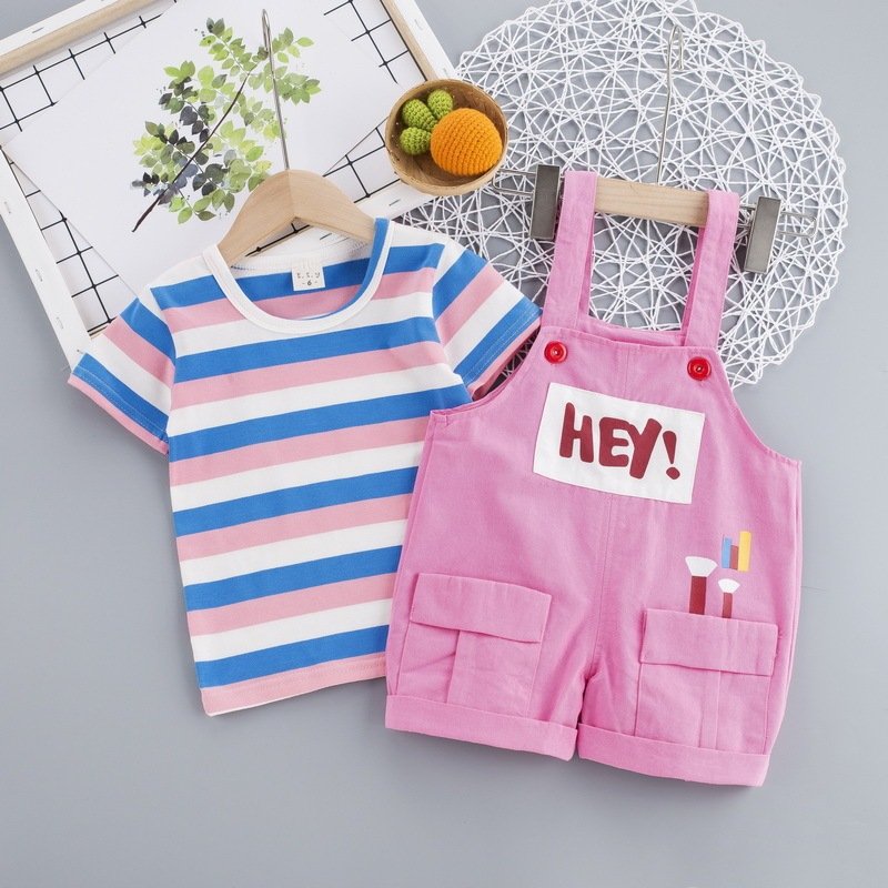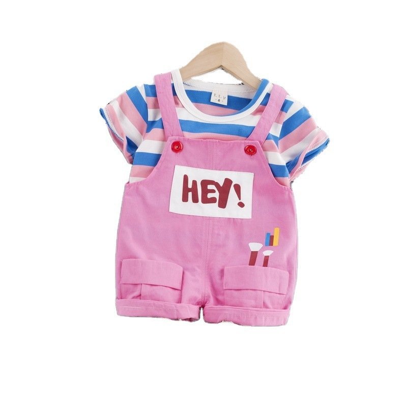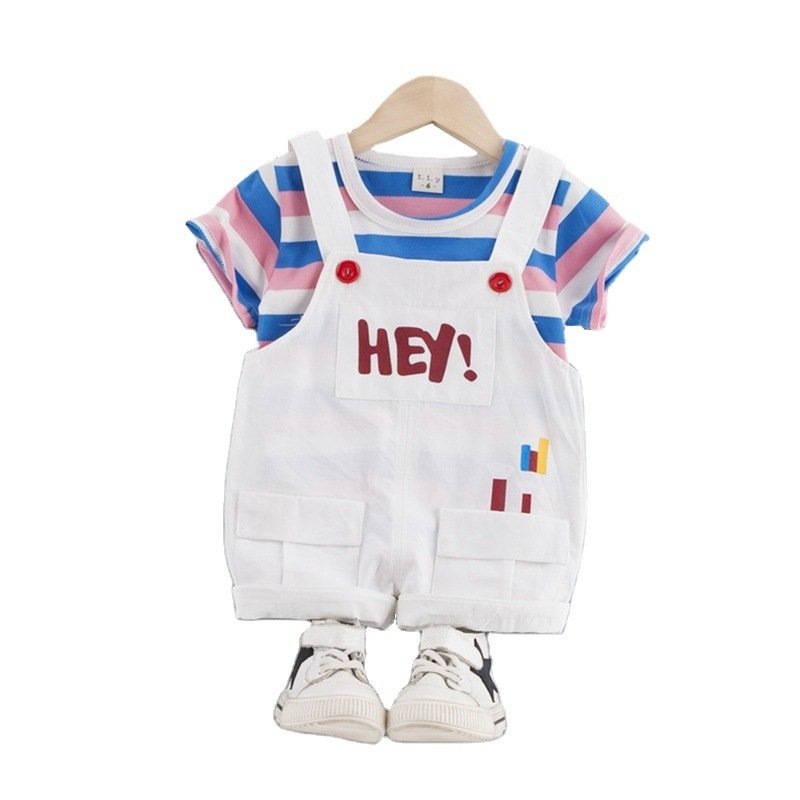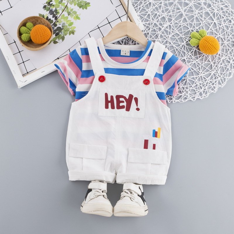 Baby Cute Round Neck Long Sleeve Striped T-Shirt And Suspender Trousers Set
