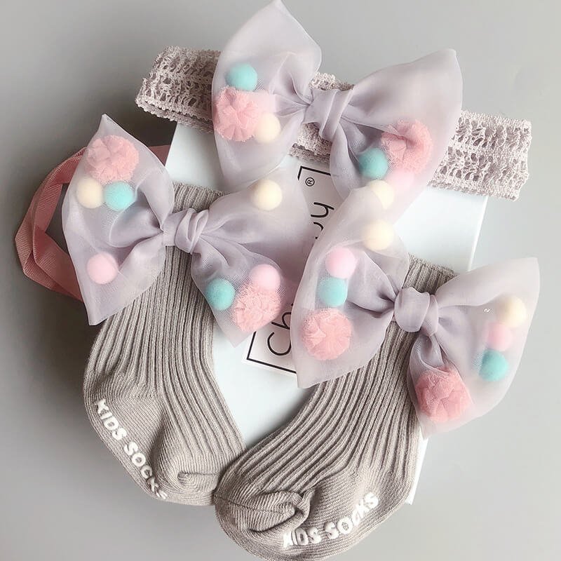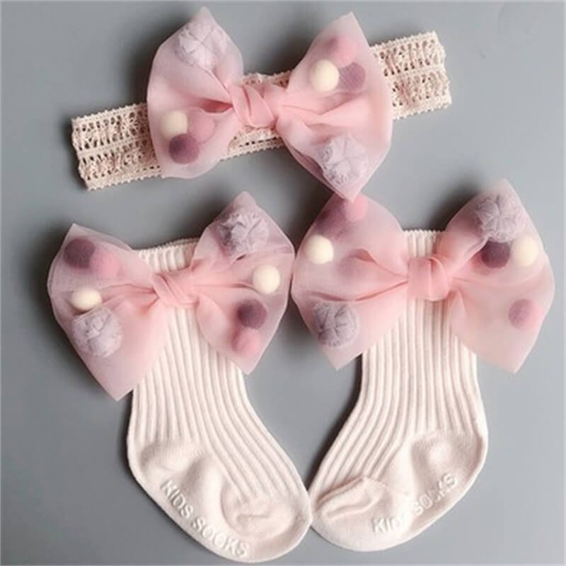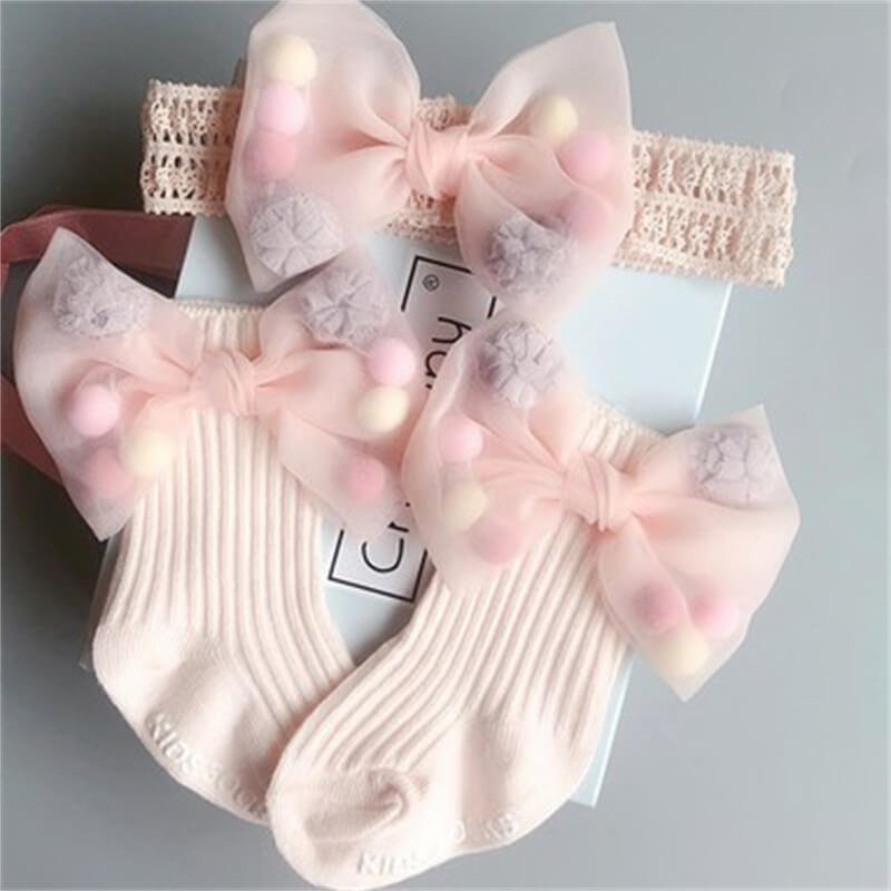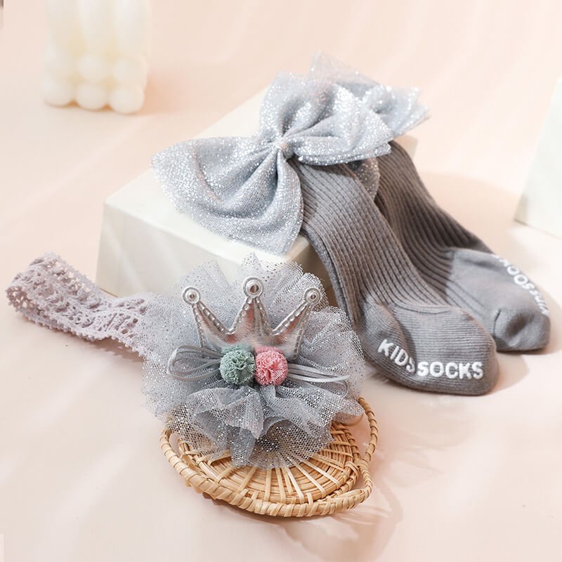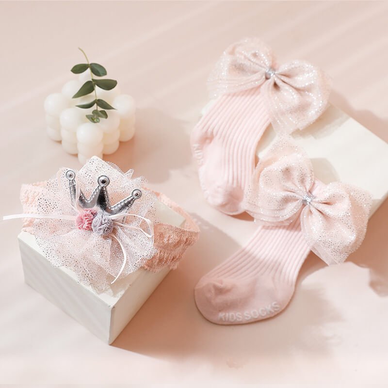 Baby Elegant Bowknot Flower Crown Lace Decoration Hair Accessories And Socks Set