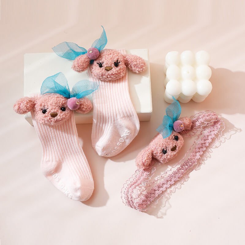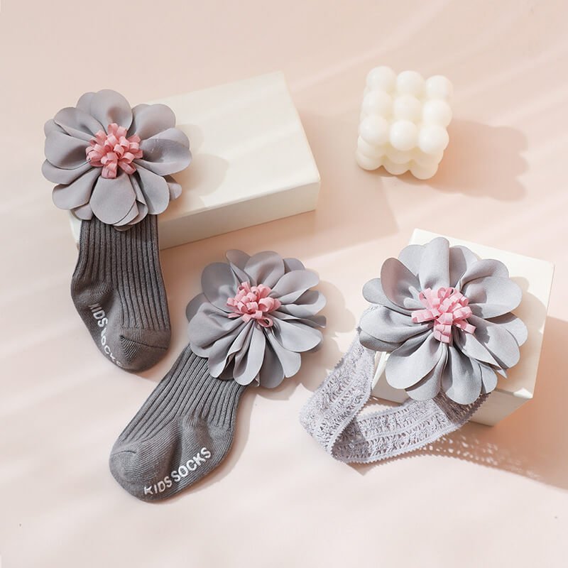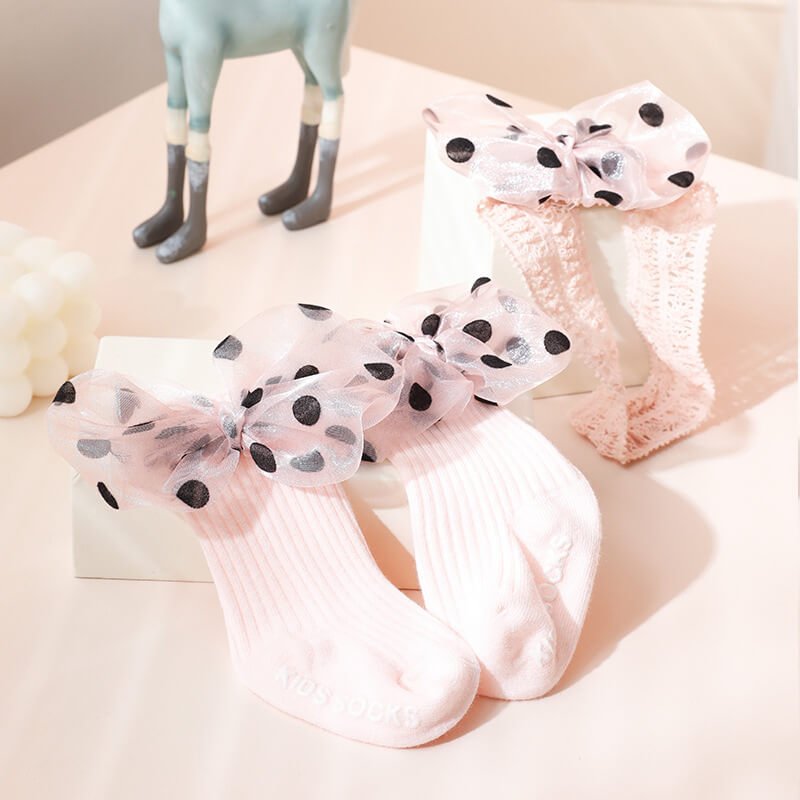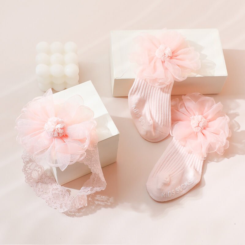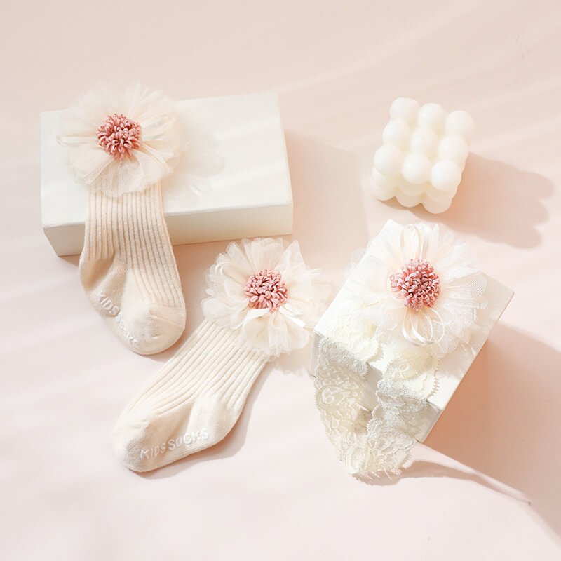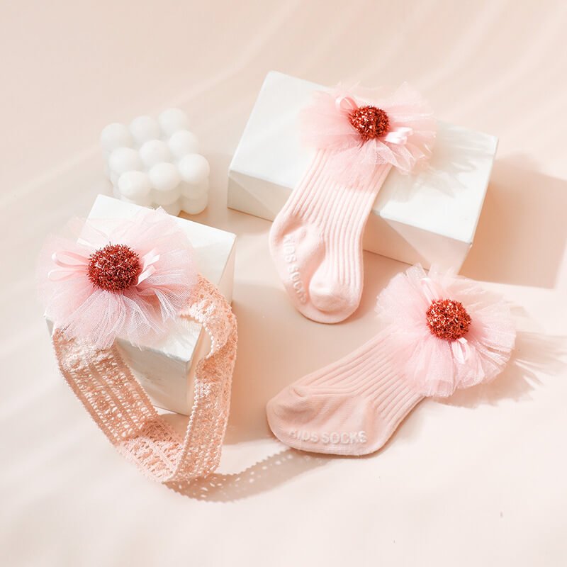 Baby Elegant Bowknot Flower Crown Lace Decoration Hair Accessories And Socks Set