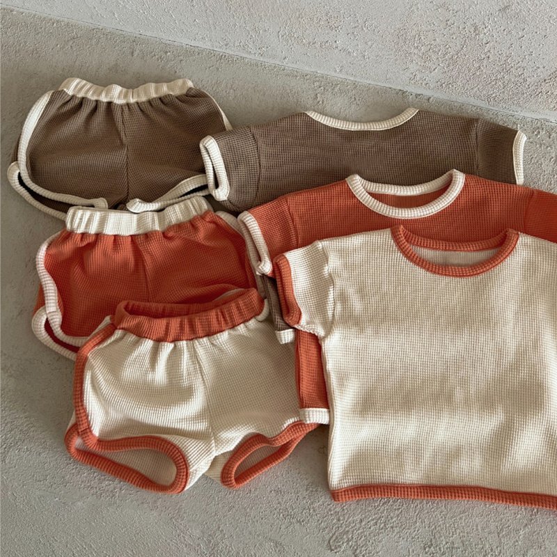 Baby Fashion Color Contrast Short Sleeve Top And Shorts Two-Piece Set