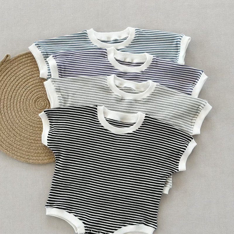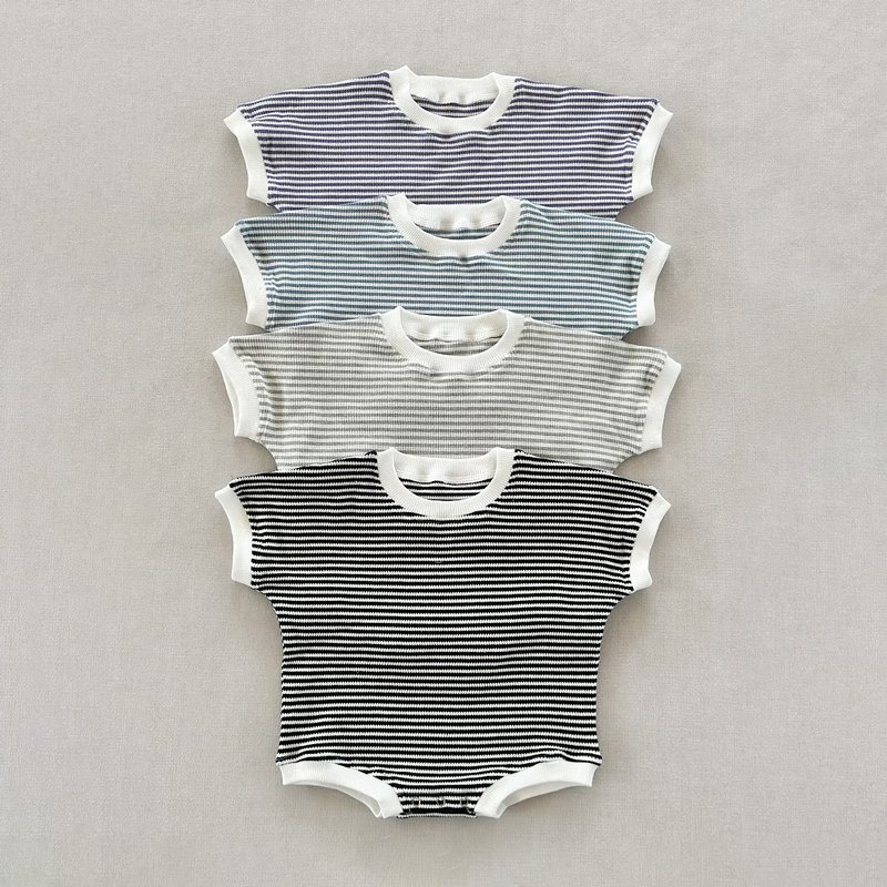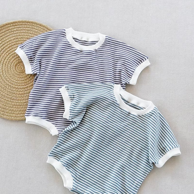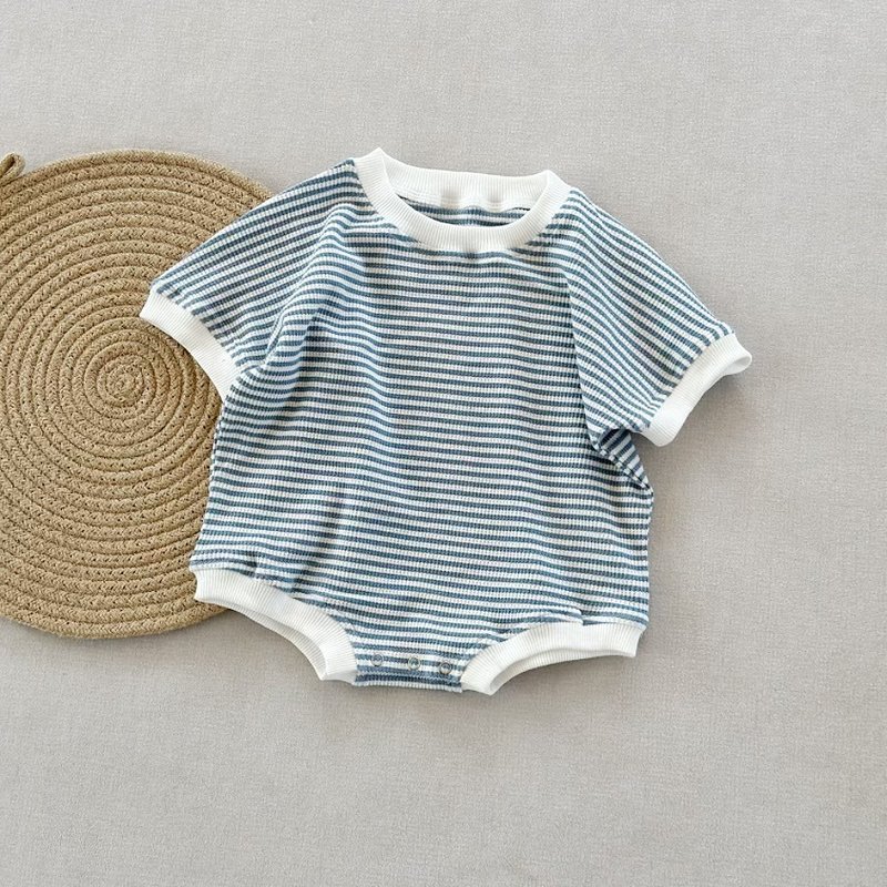 Baby Fashion Cotton Stripe Waffled Short Sleeve Loose Rompers