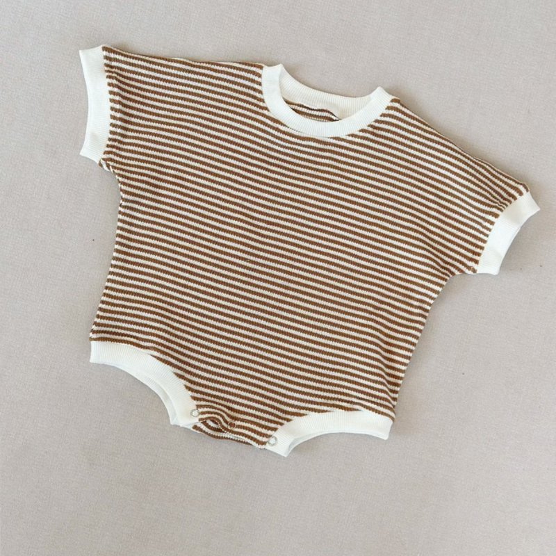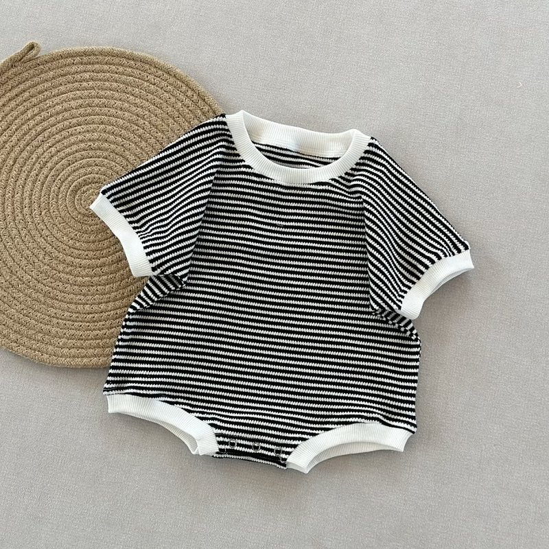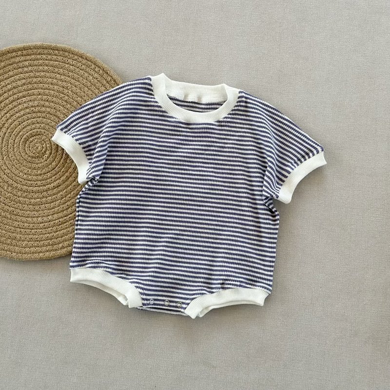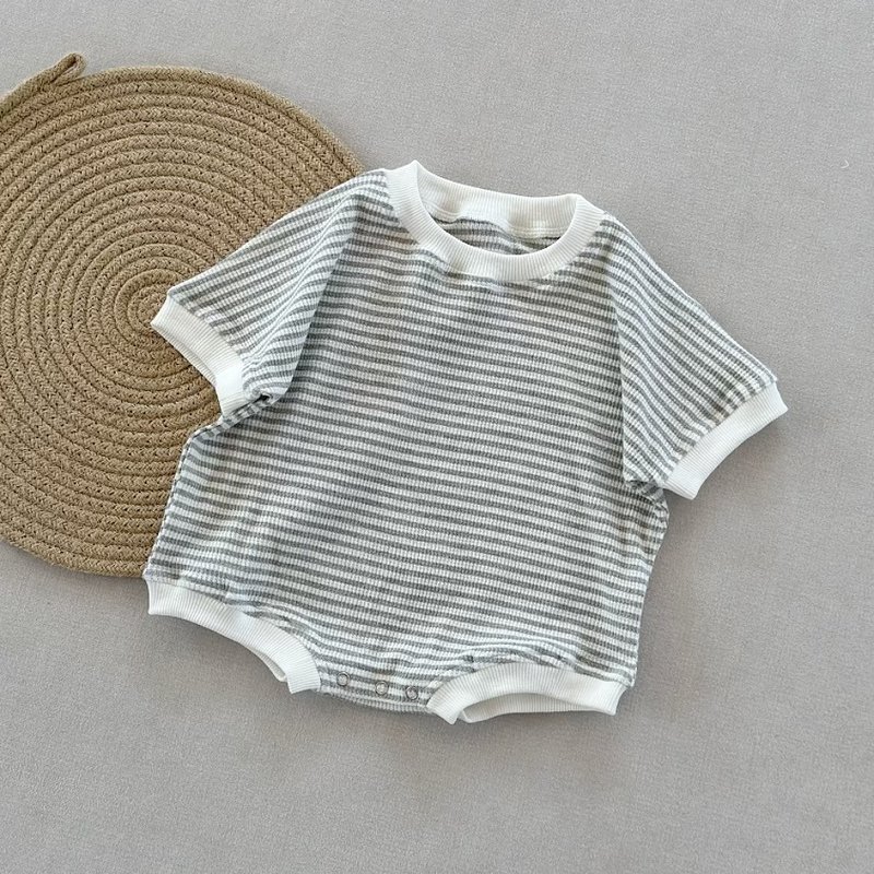 Baby Fashion Cotton Stripe Waffled Short Sleeve Loose Rompers