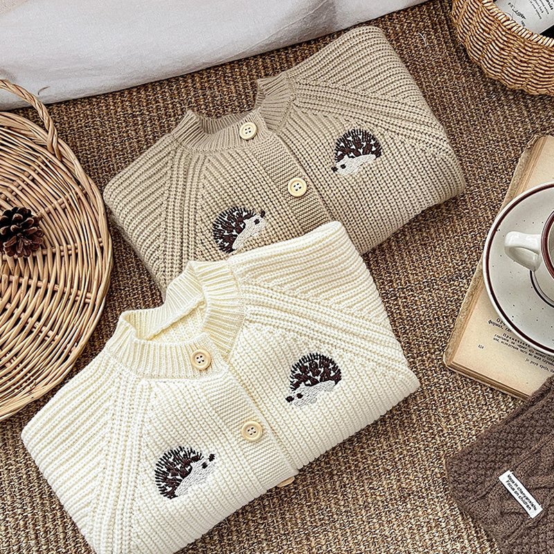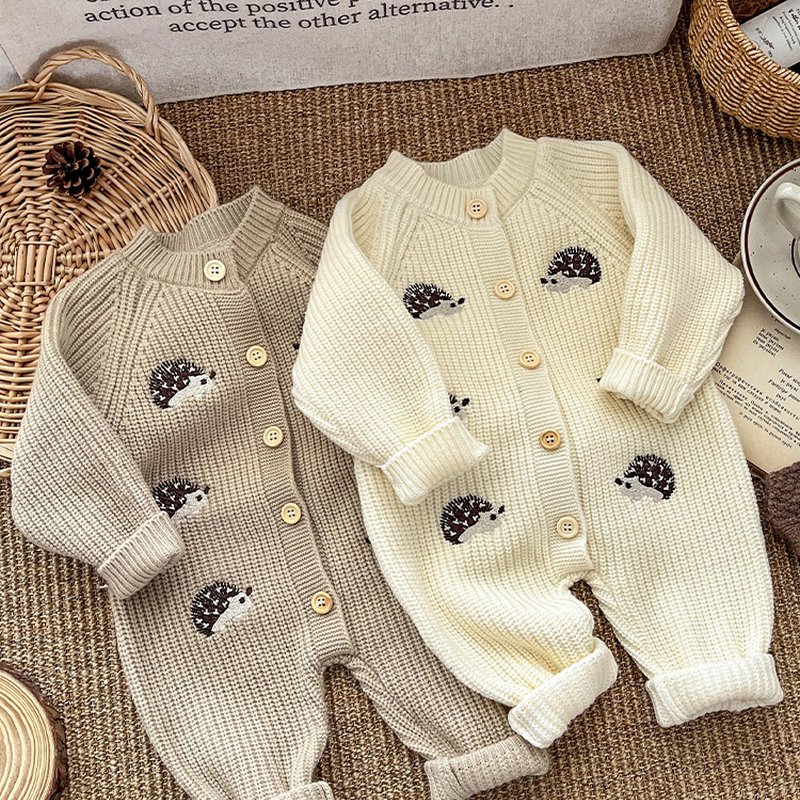 Baby Fashion Cute Autumn Knitted Embroidered Hedgehog Long-Sleeve Jumpsuits