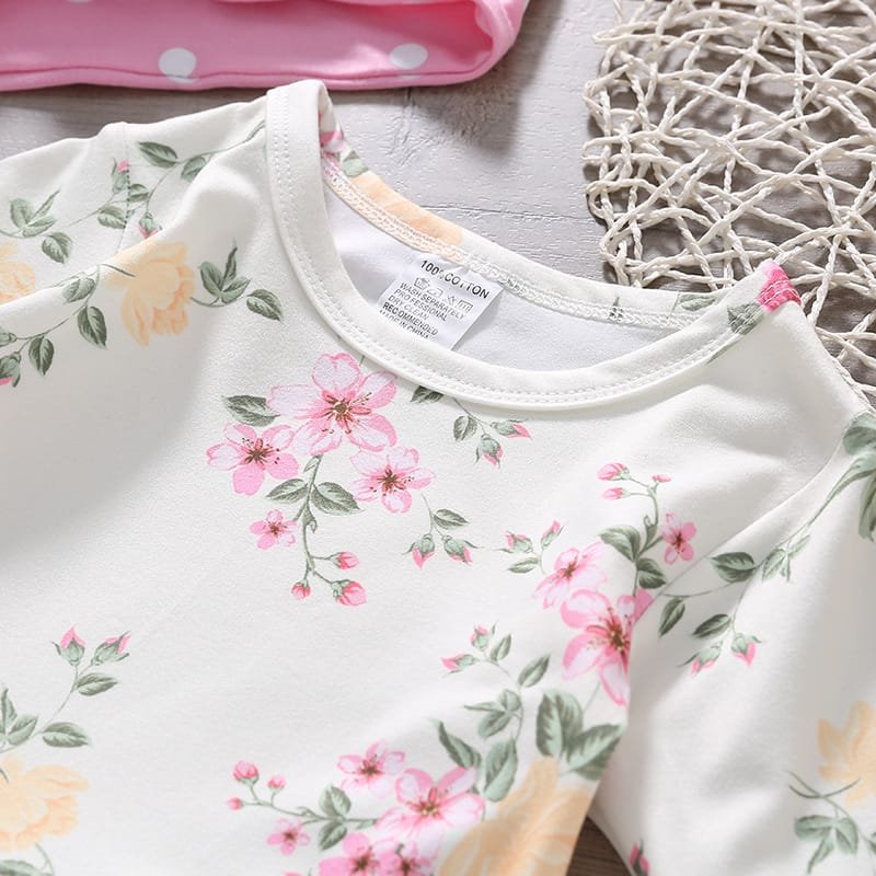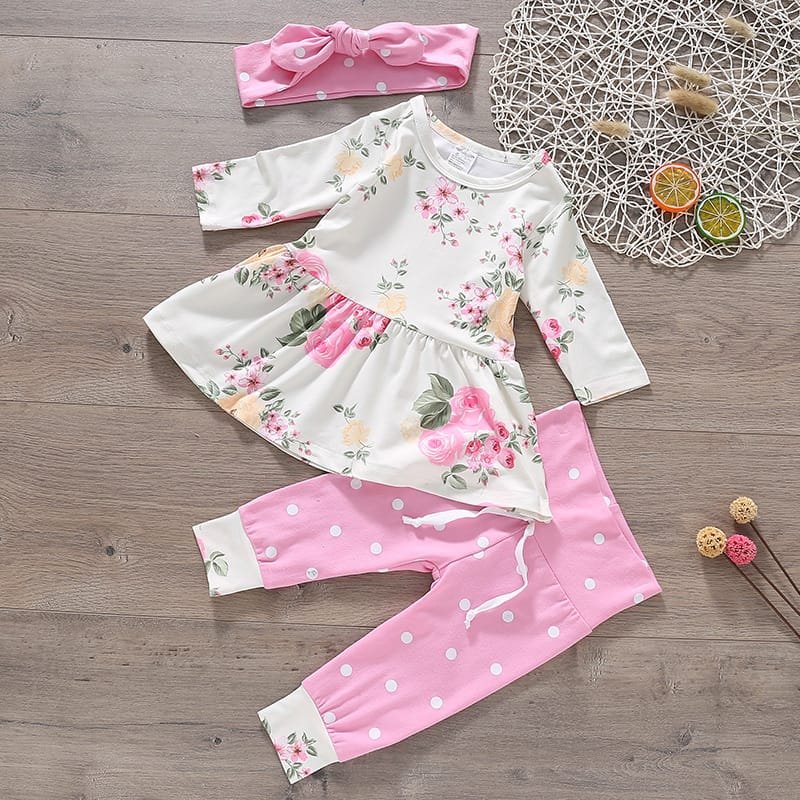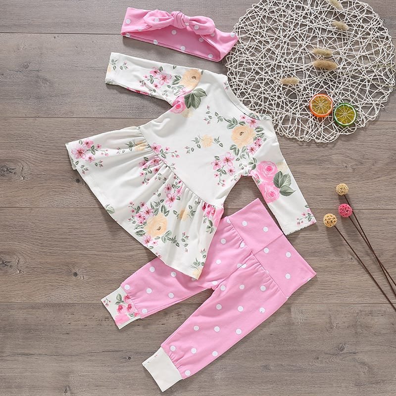 Baby Flower Pattern Skirt Design Tops And Pants With Headband Set