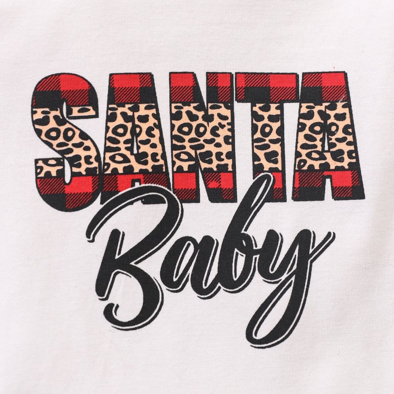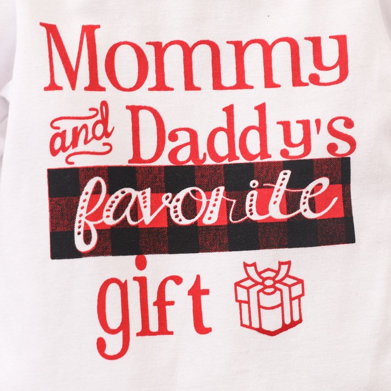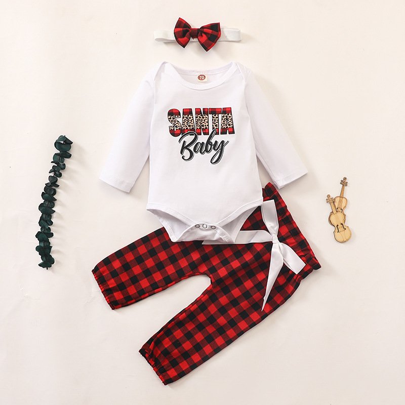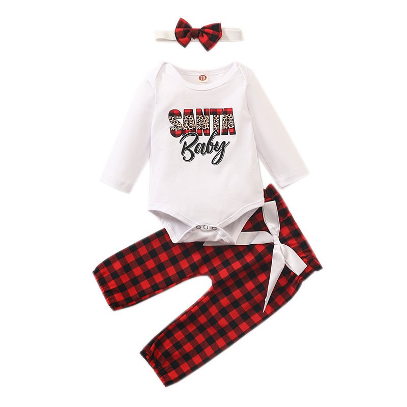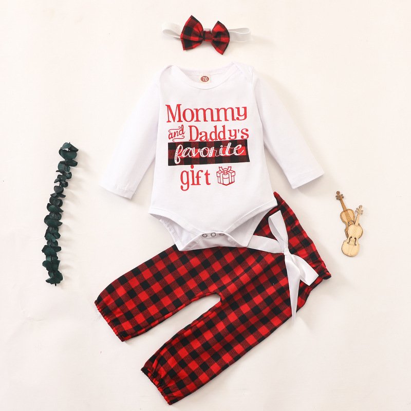 Baby Girl Christmas Letter Plaid Print Three-Piece Set