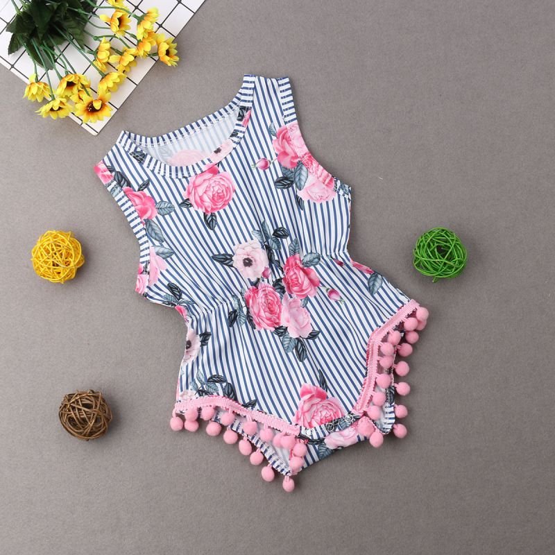 Baby Girl Clothing Floral Print Tassel Design Romper