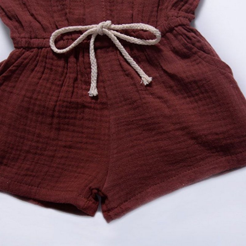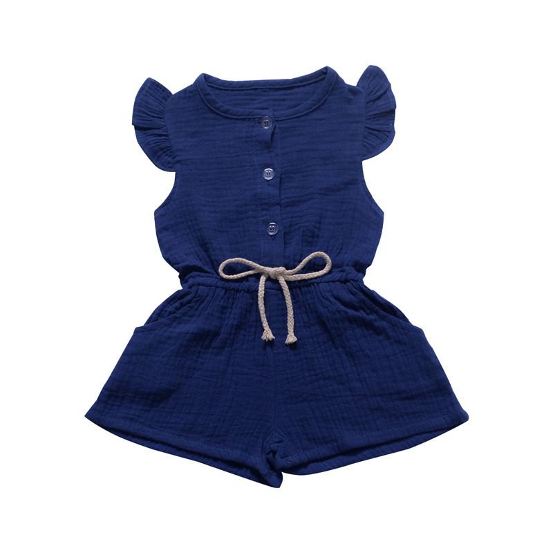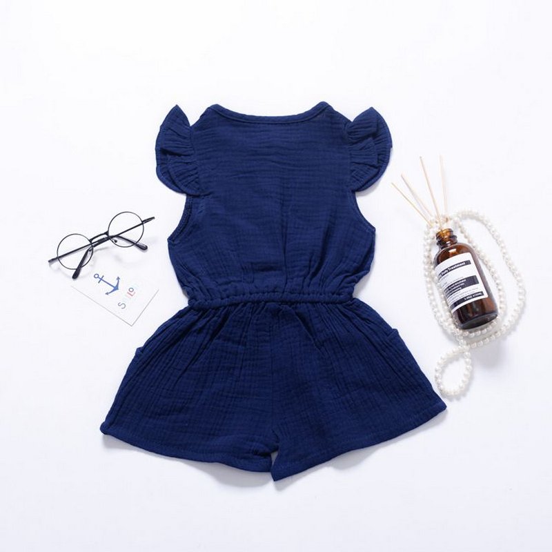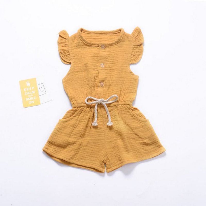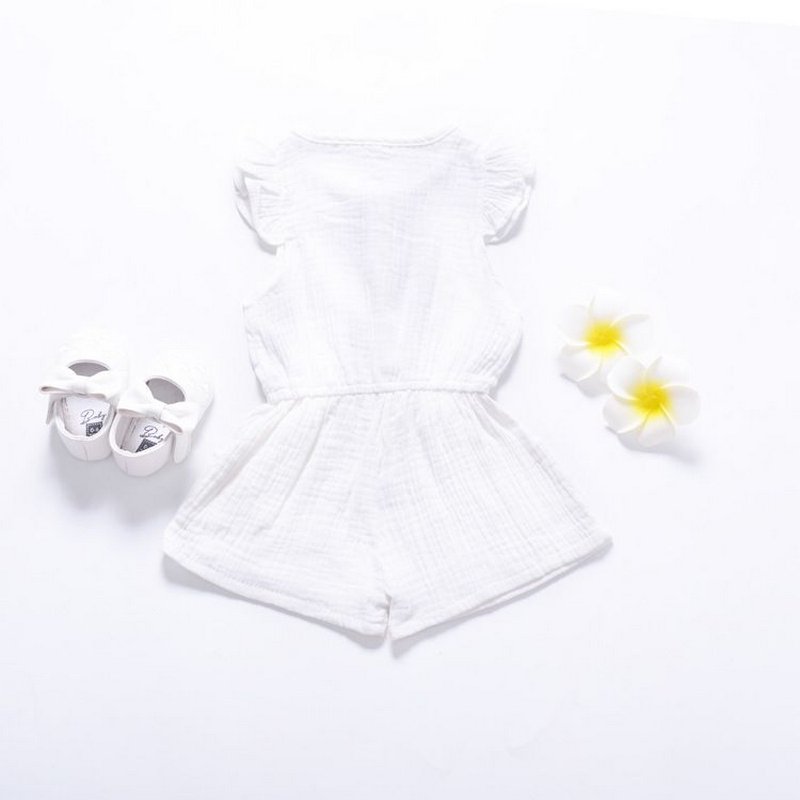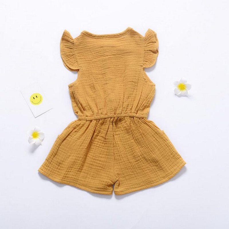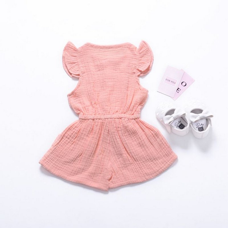 Baby Girl Cotton Solid Color Ruffle Sleeve Romper