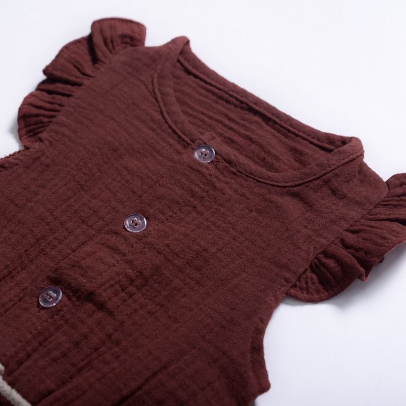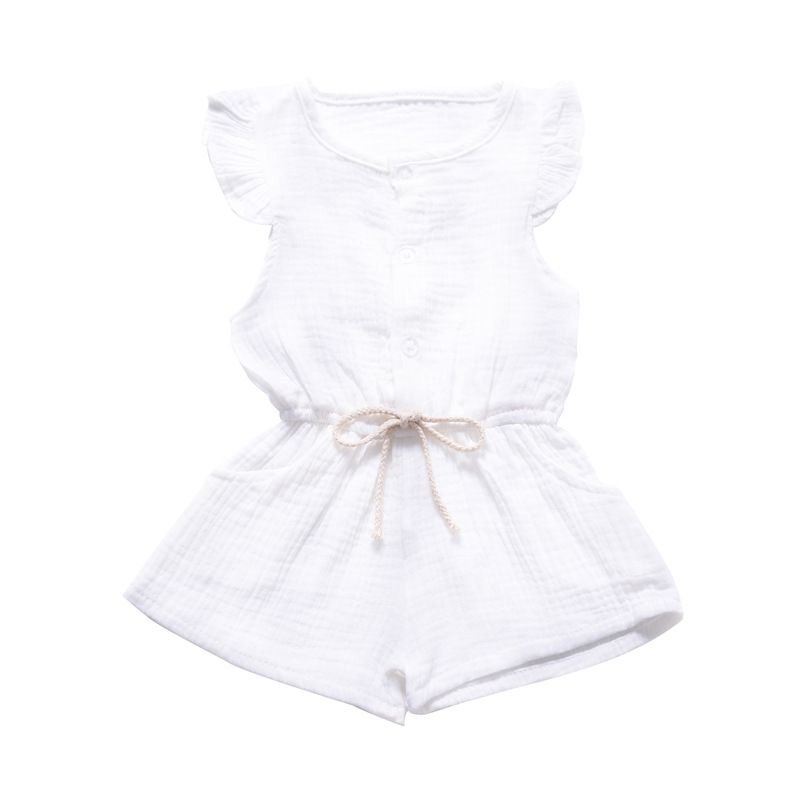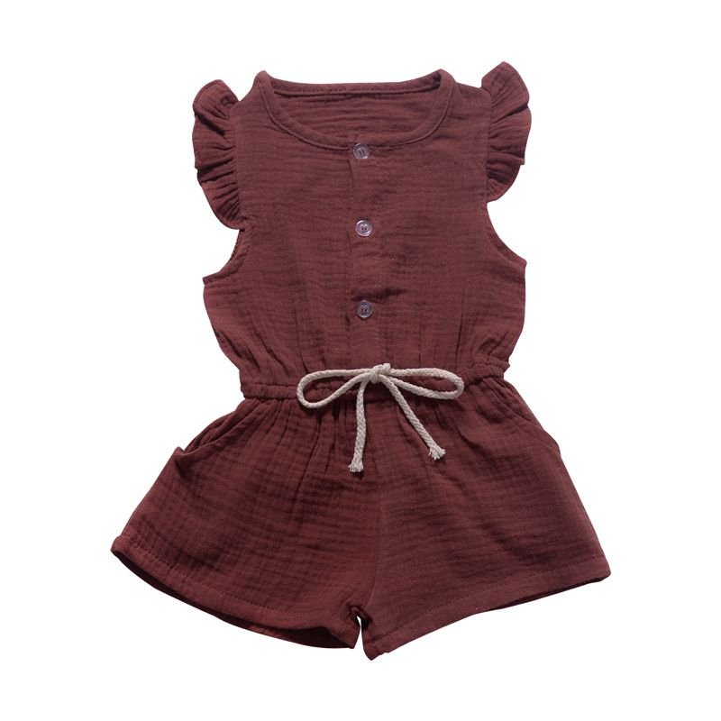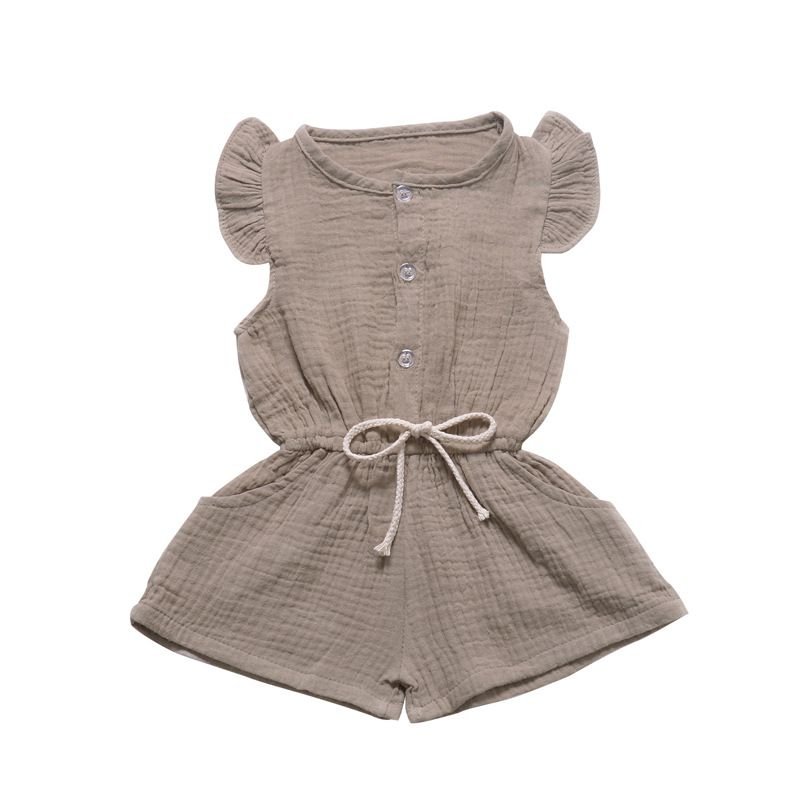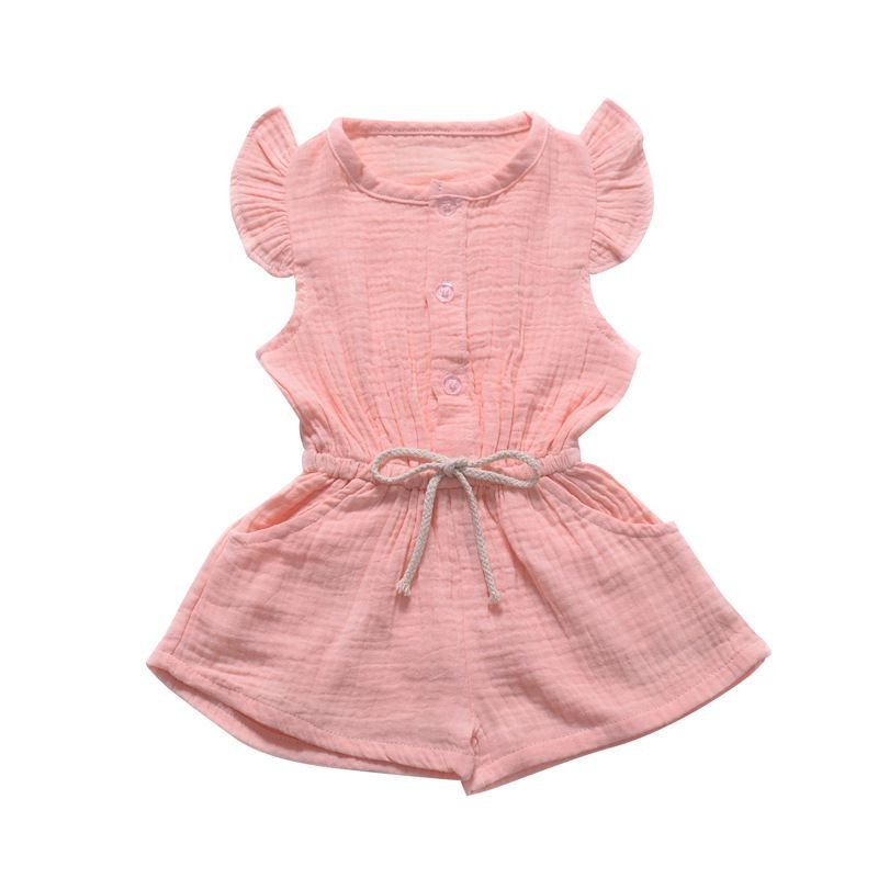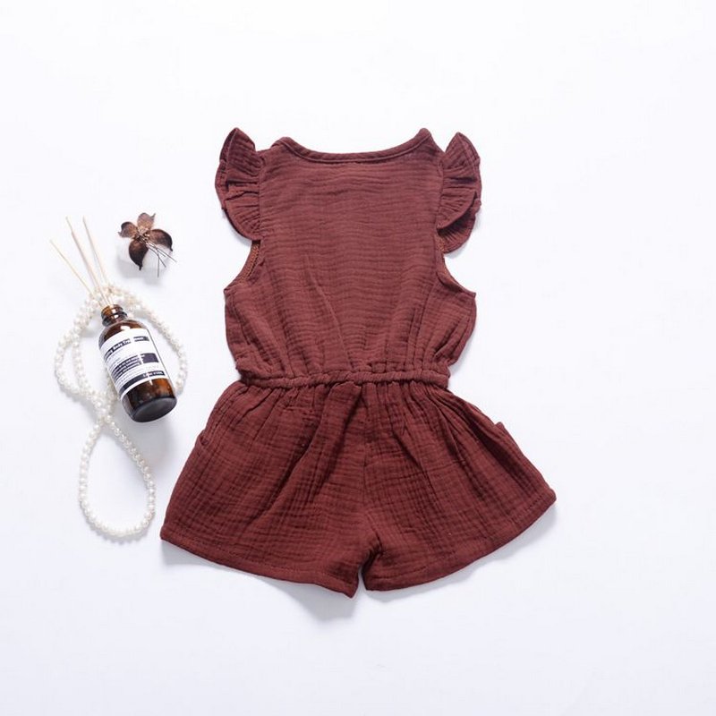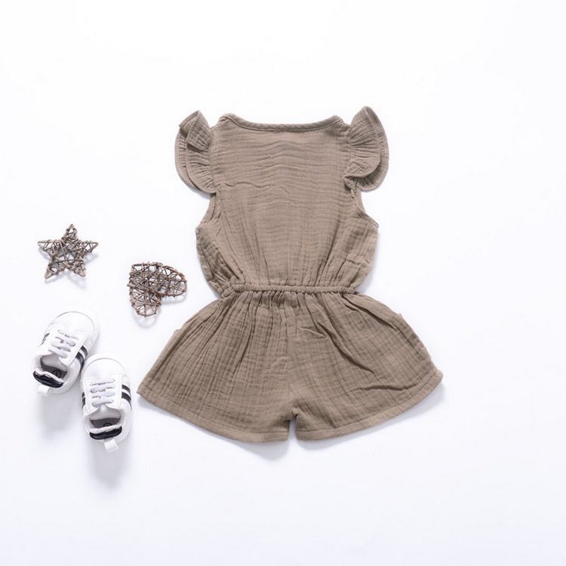Baby Girl Cotton Solid Color Ruffle Sleeve Romper