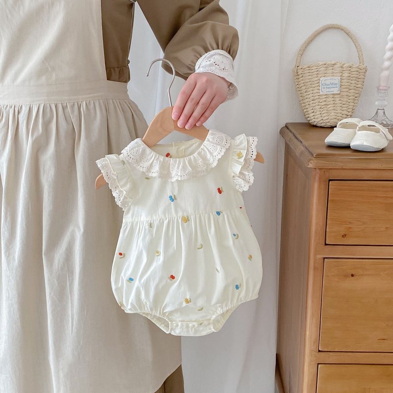 Baby Girl Fashion Cute Floral Embroidered Lace Splicing Bodysuits