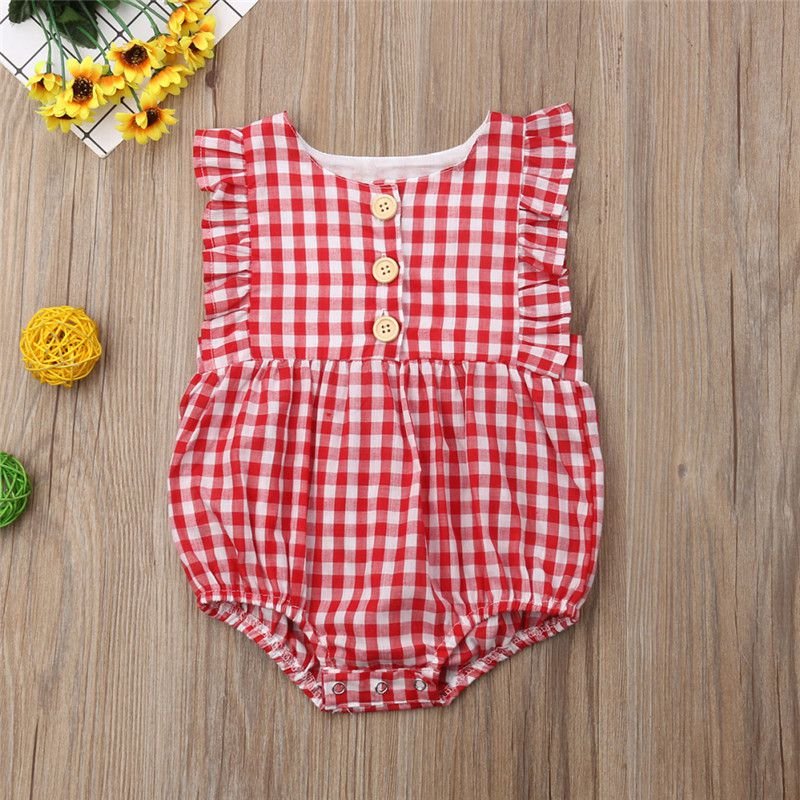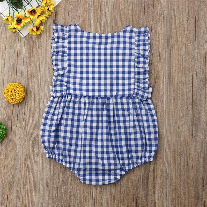 Baby Girl Plaid Print Ruffle Sleeves Bodysuit