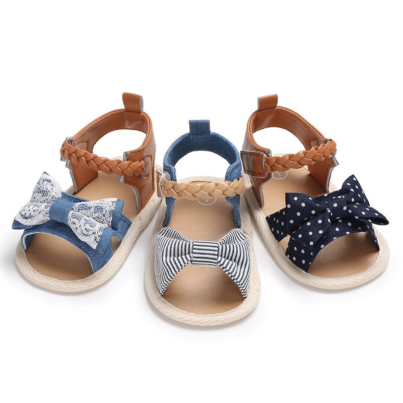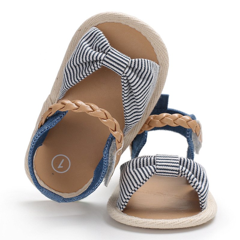 Baby Girls Basic Bow Stripe Non-slip Sandals