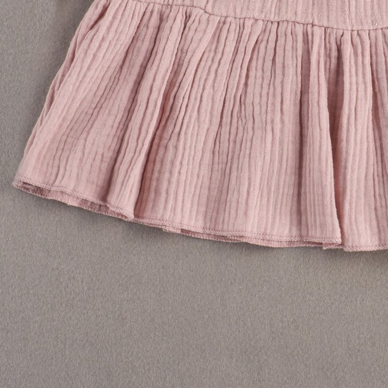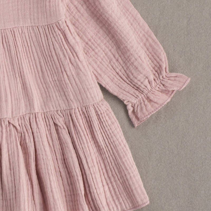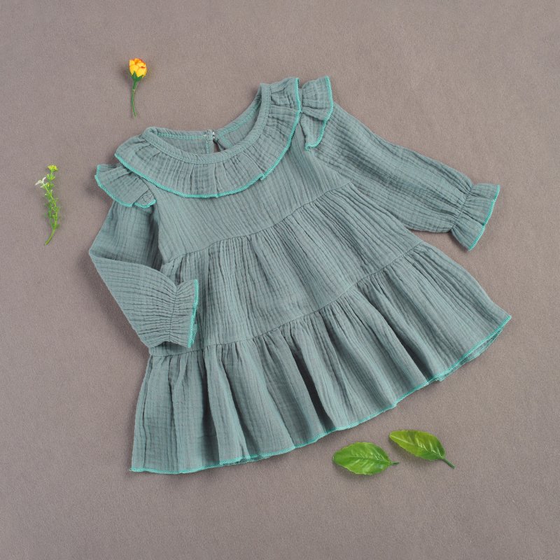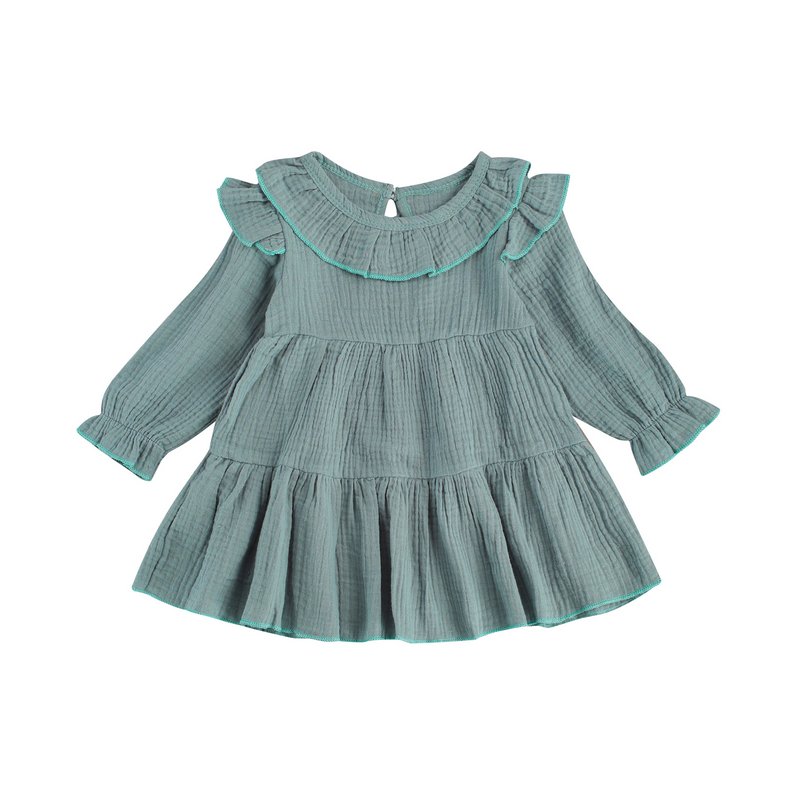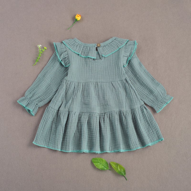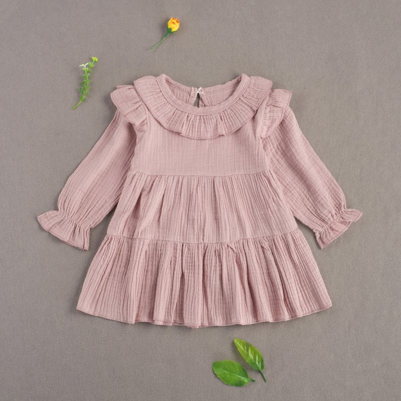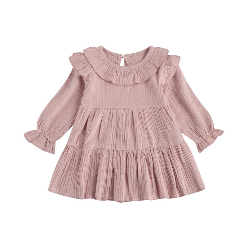 Baby Girls Basic Casual Round Neck Ruffled Long Sleeve Solid Color Dress
