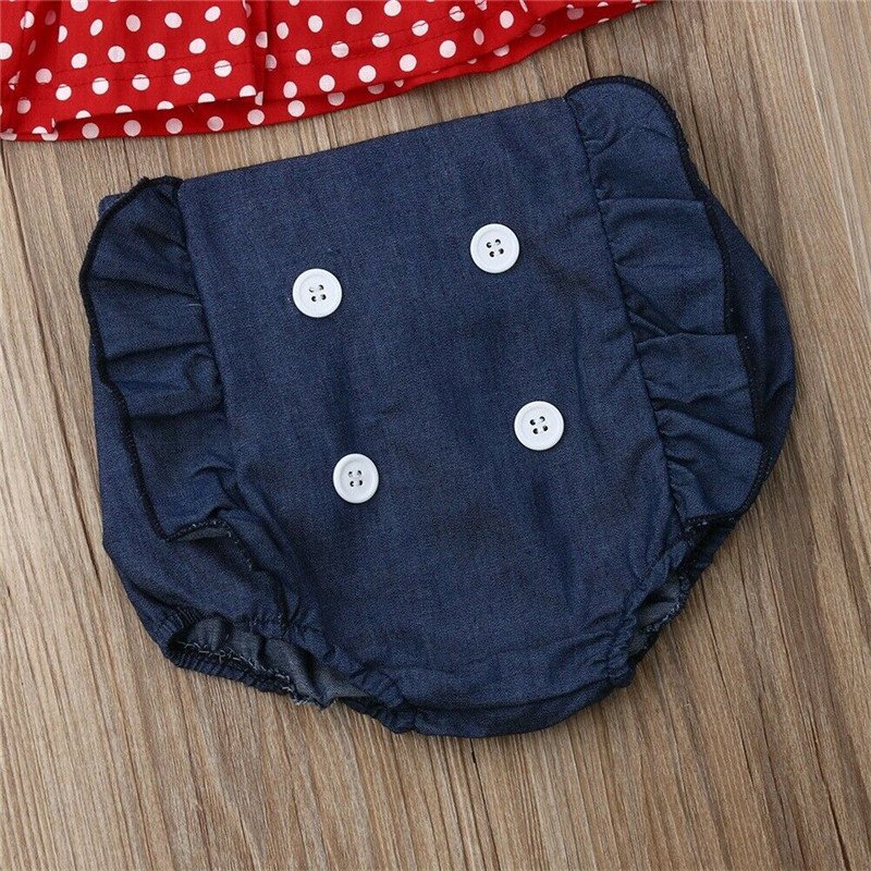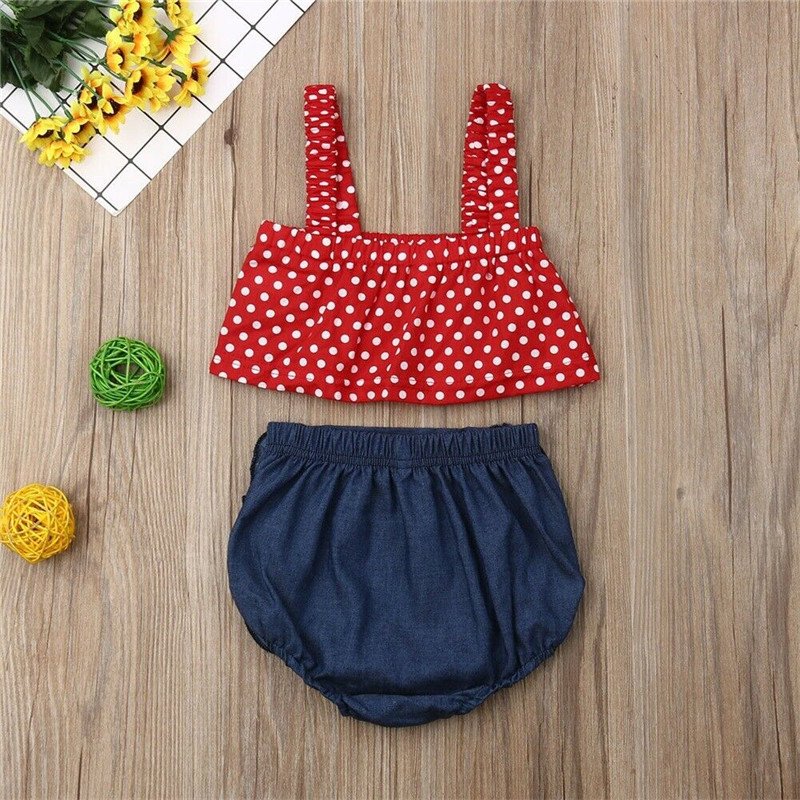 Baby Girls Basic Polka Dot All Over Print Top And Ruffled Denim Shorts Set