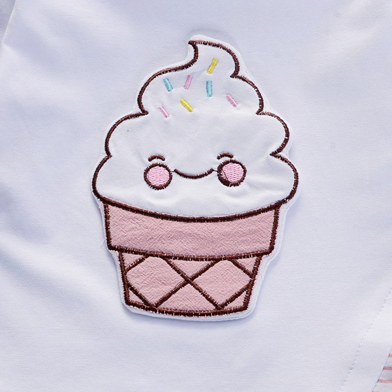 Baby Girls Basic Round Neck Short Sleeve Cartoon Ice Cream Cherry Pattern T-Shirt And Elastic Shorts Set