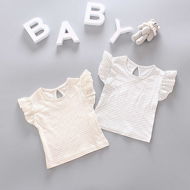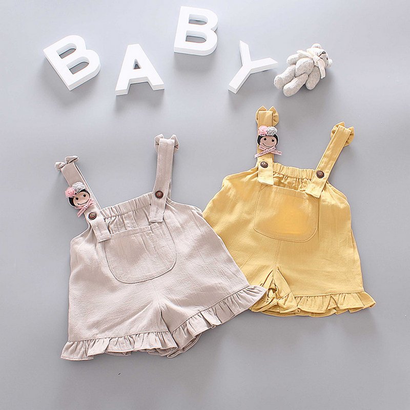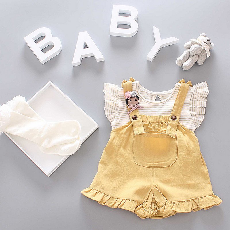 Baby Girls Basic Round Neck Short-sleeved Stringy Selvedge T-Shirt And Suspender Trousers Set