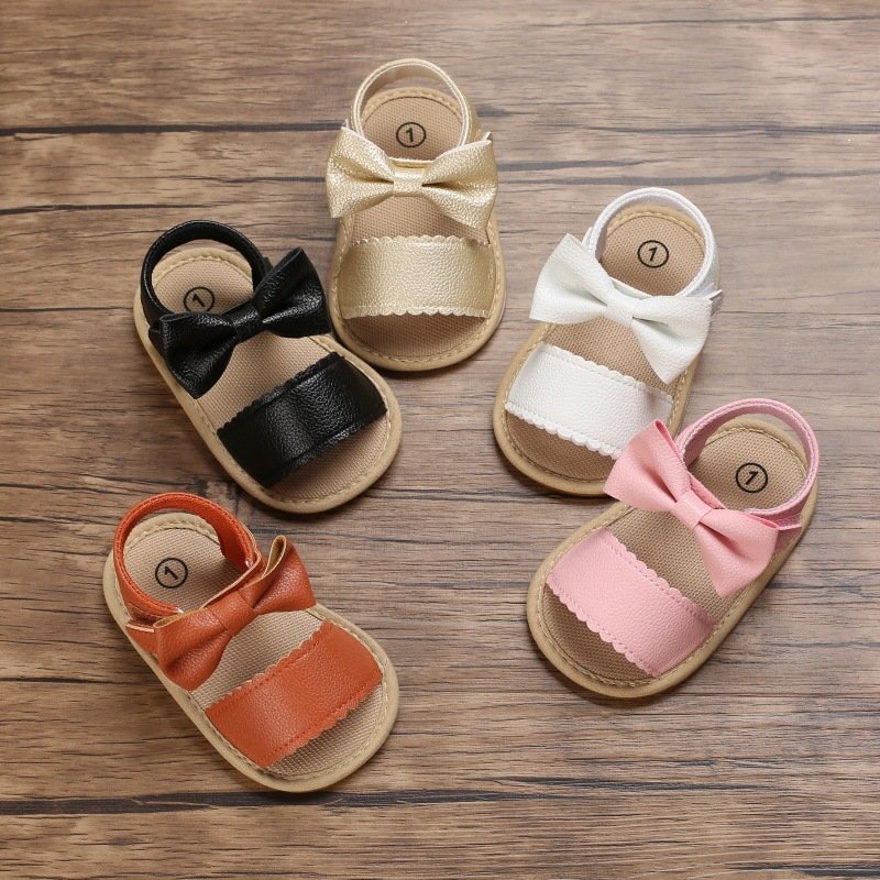 Baby Girls Basic Solid Color Bow Decor PU Sandals