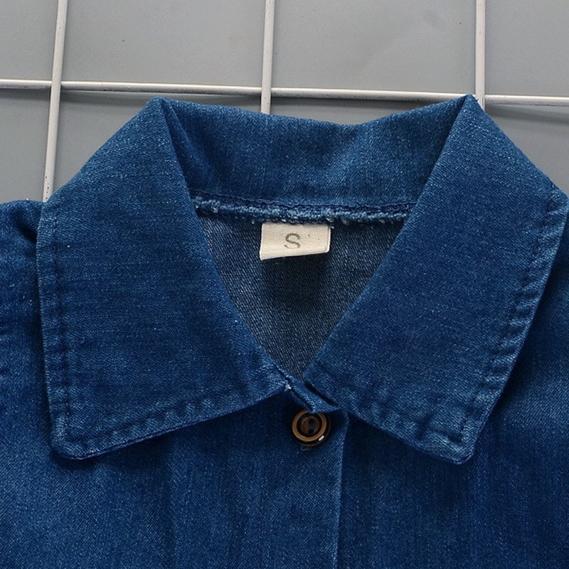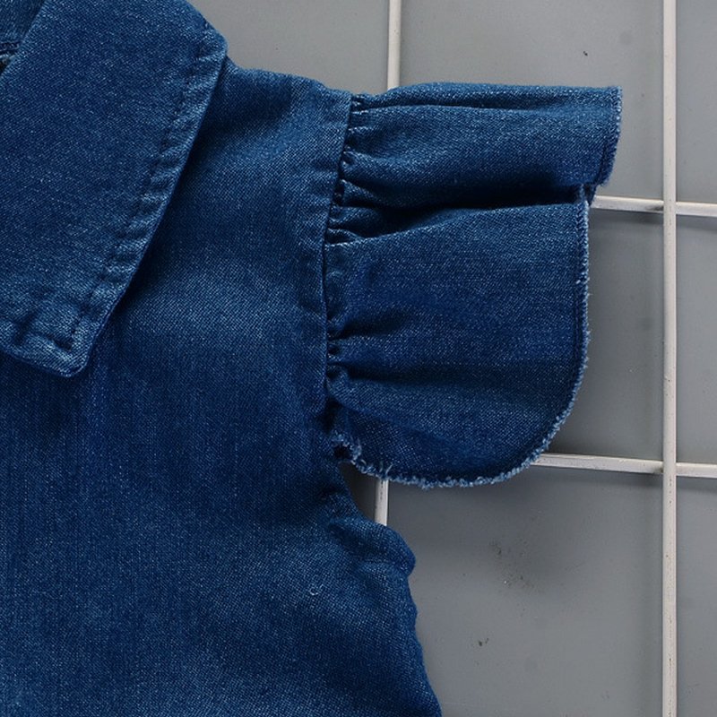 Baby Girls Basic Solid Color Lapel Ruffled Single-breasted Denim Dress
