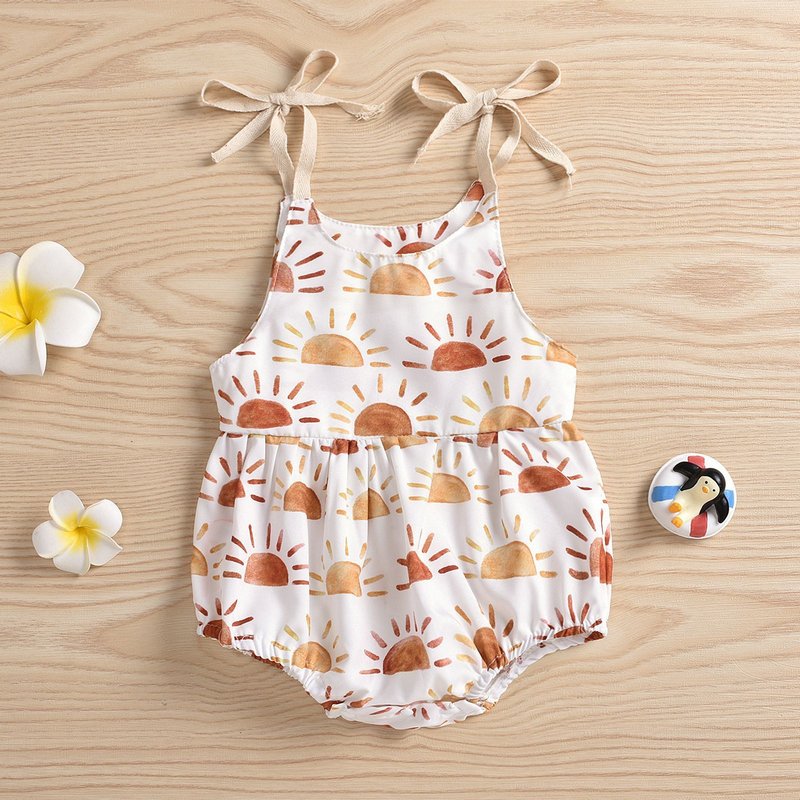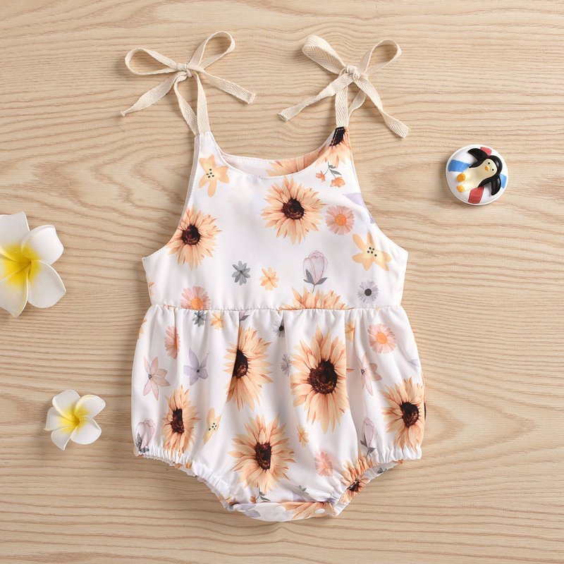 Baby Girls Basic Sunflower Sun All Over Print Sling Romper