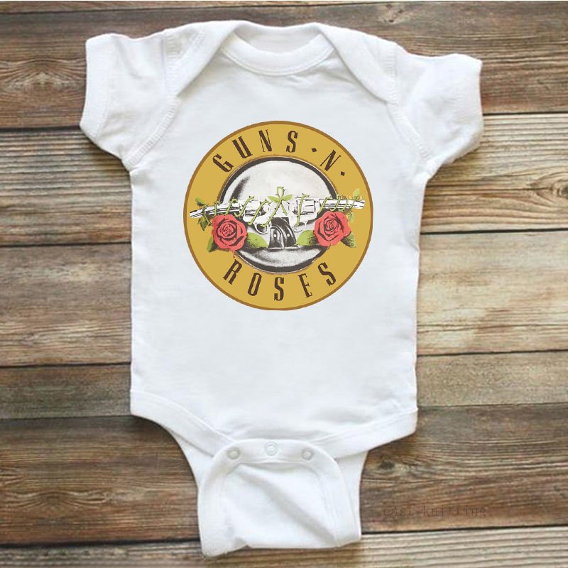 Baby Girls Casual Round Neck Short Sleeve Guns Roses Pattern Peace Romper