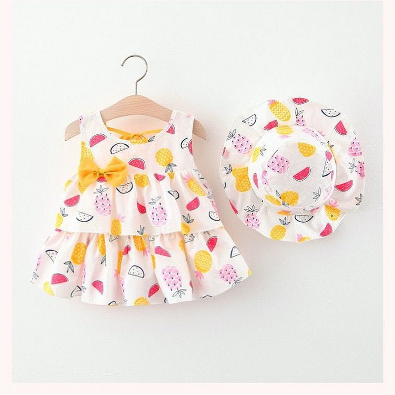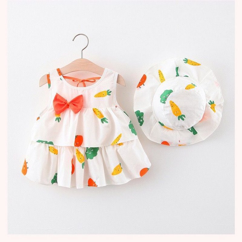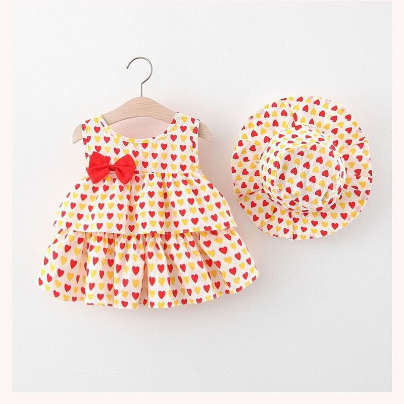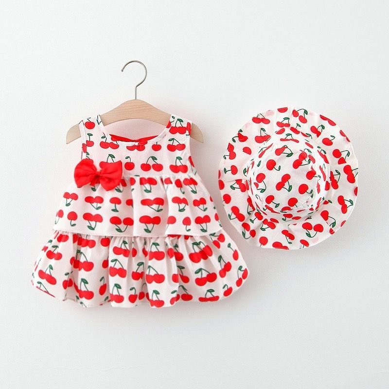 Baby Girls Cute Cartoon Fruit Heart Ruffled Dress With Hat