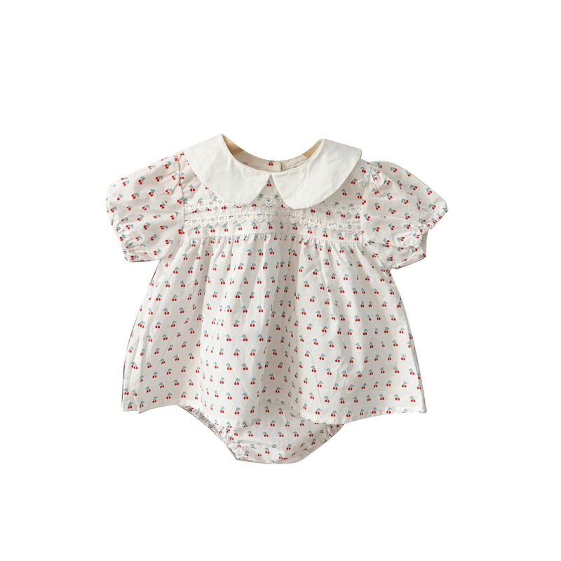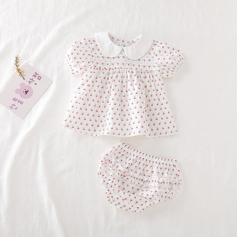 Baby Girls Cute Doll Collar Short-sleeved Floral All Over Print T-Shirt And Elastic Shorts Two-piece Set