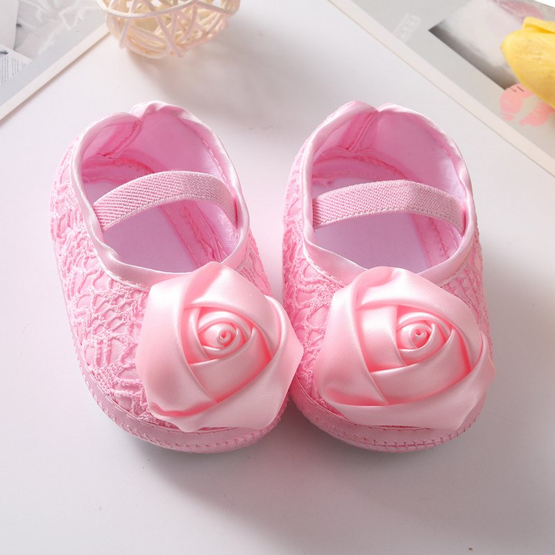 Baby Girls Cute Flower Decor Solid Color First Walkers