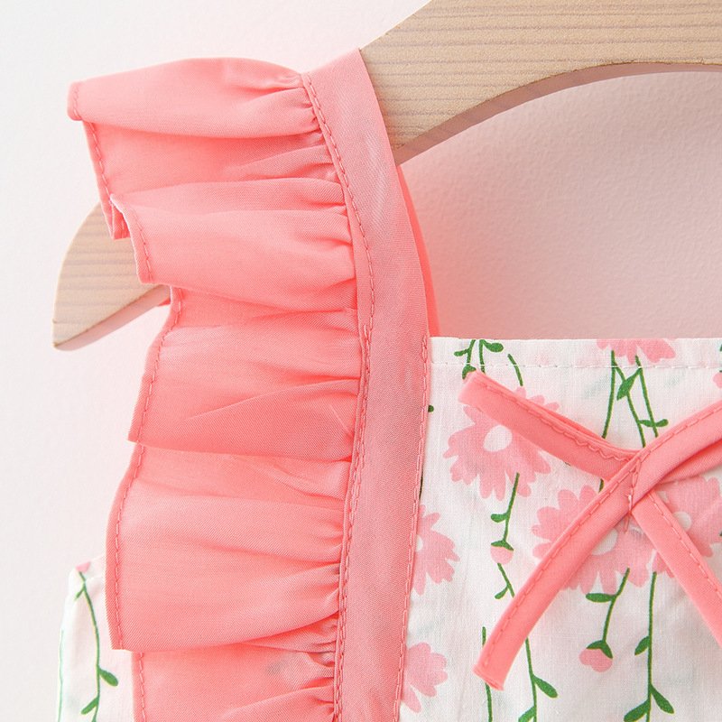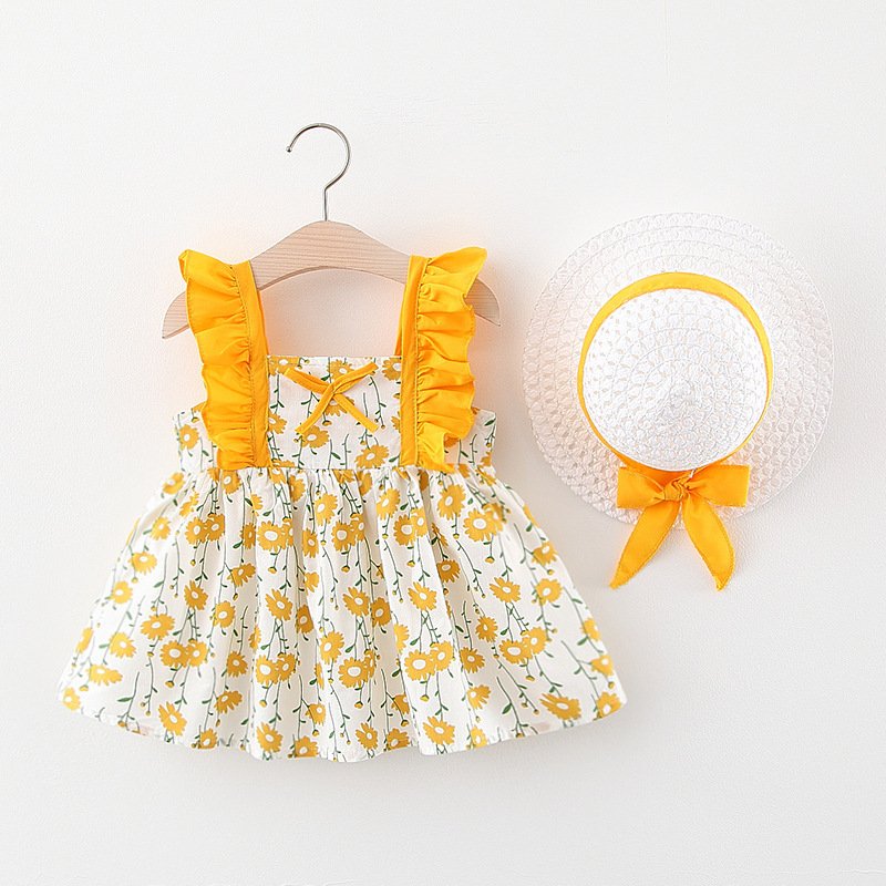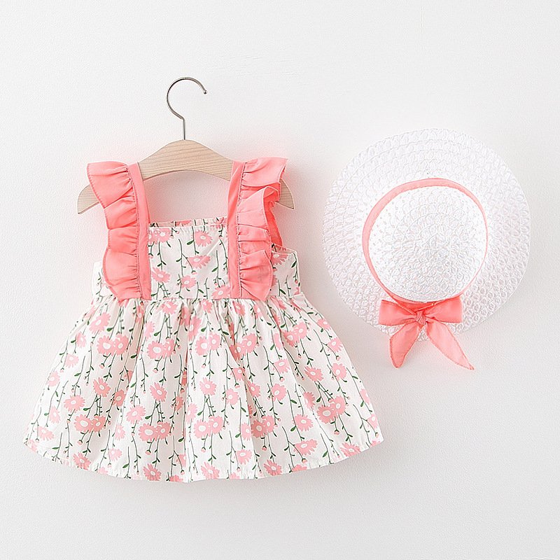 Baby Girls Cute Stringy Selvedge Floral All Over Print Dress With Hat