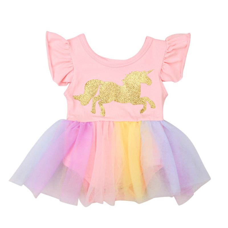 Baby Girls Gold Horse Print Multicolor Mesh Rompers Style Dresses
