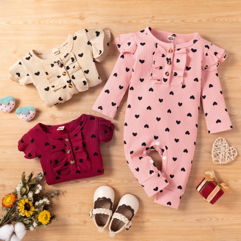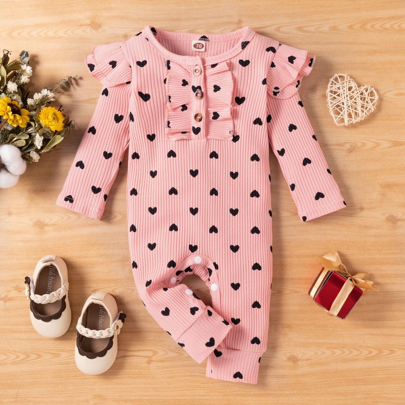 Baby Girls Round Neck Long Sleeve Stringy Selvedge Heart Pattern Jumpsuit