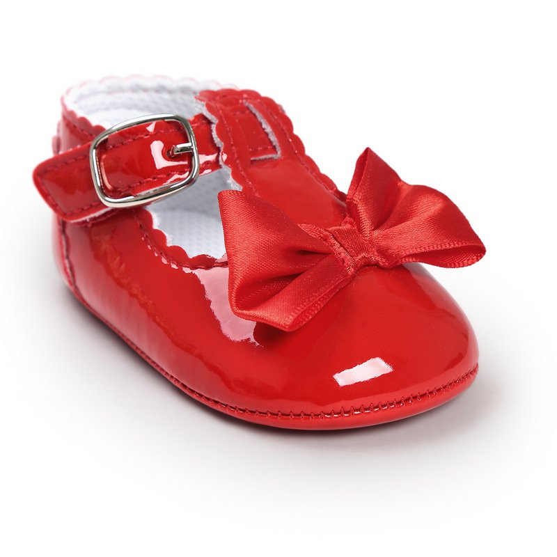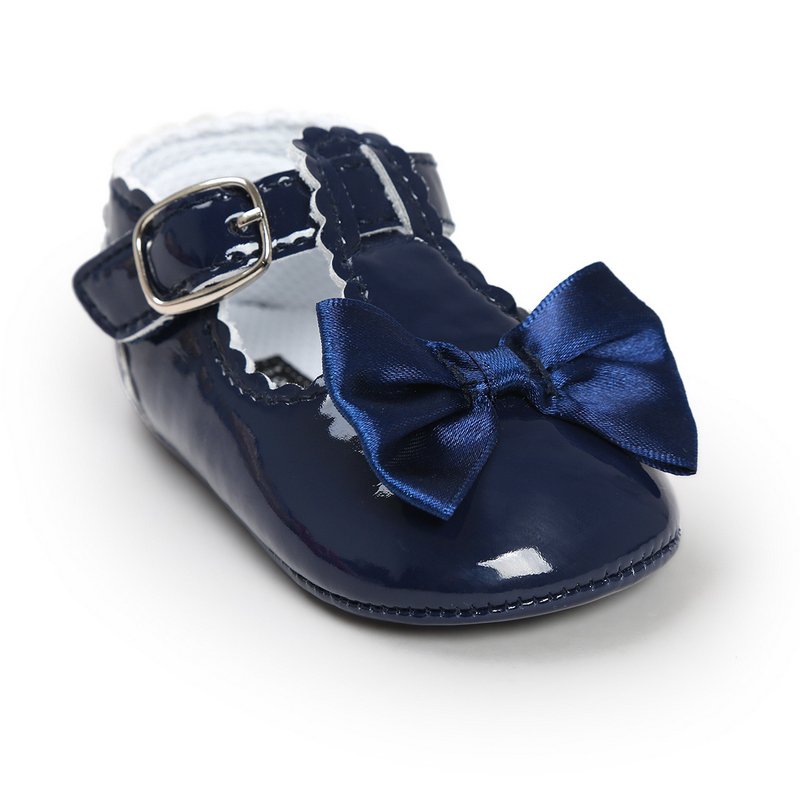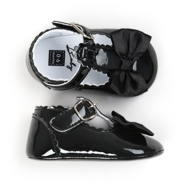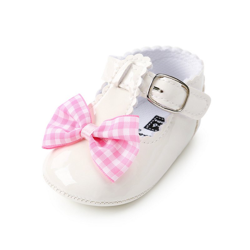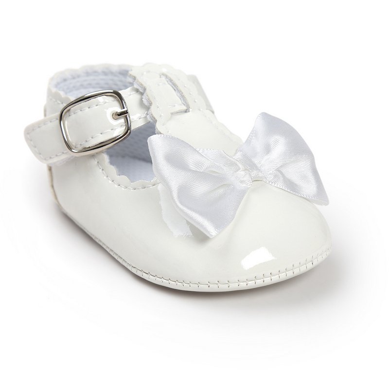 Baby Girls Simple Solid Color Bow Decor Metal Buckle Design PU Flats