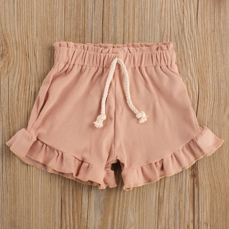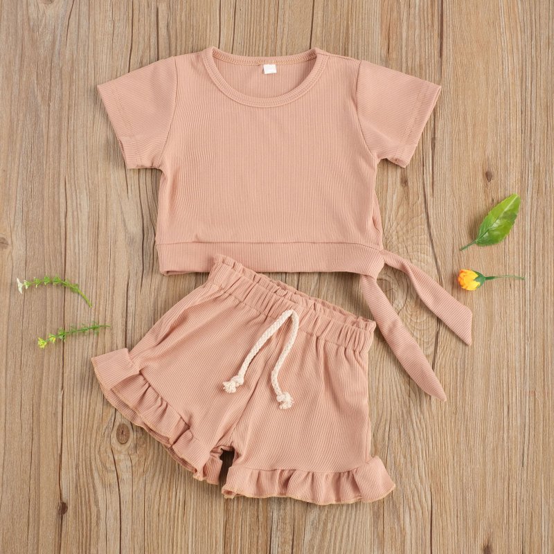 Baby Girls Simple Solid Color Round Neck Short Sleeve Lace-up T-Shirt And Elastic Shorts Set