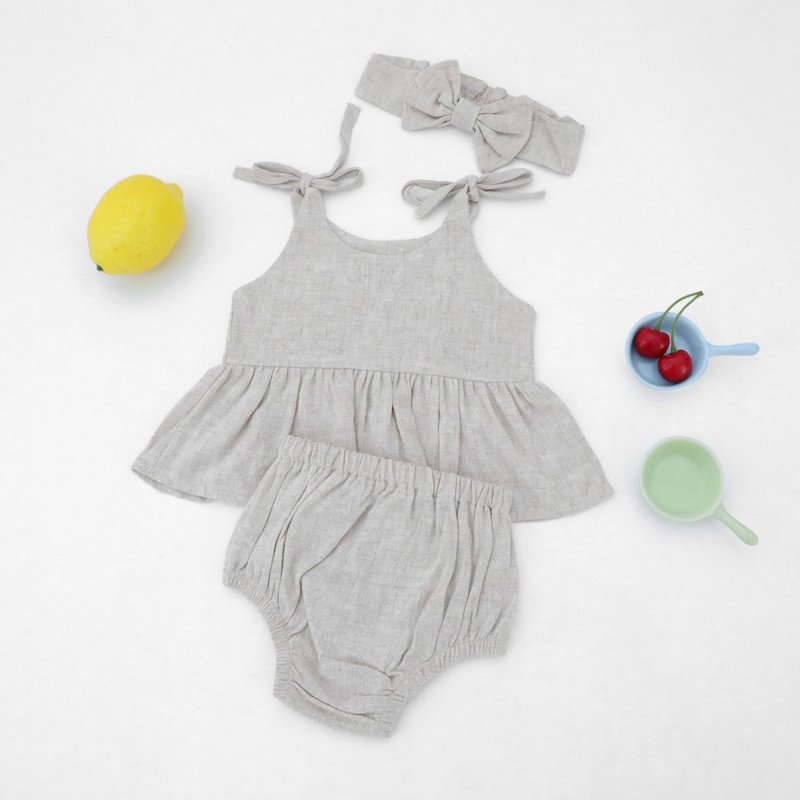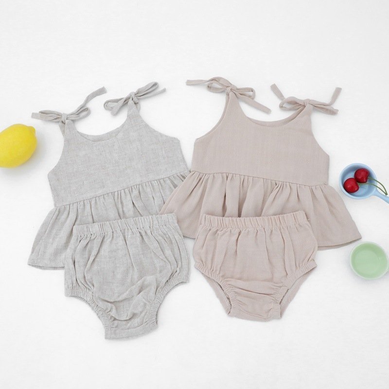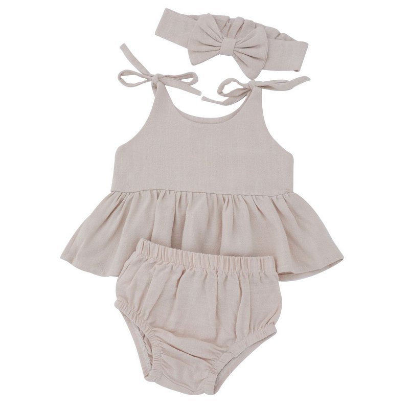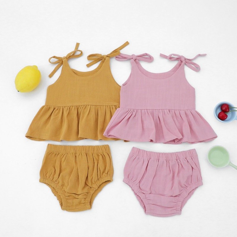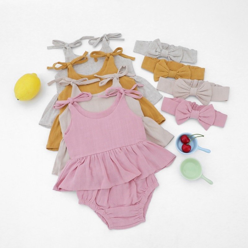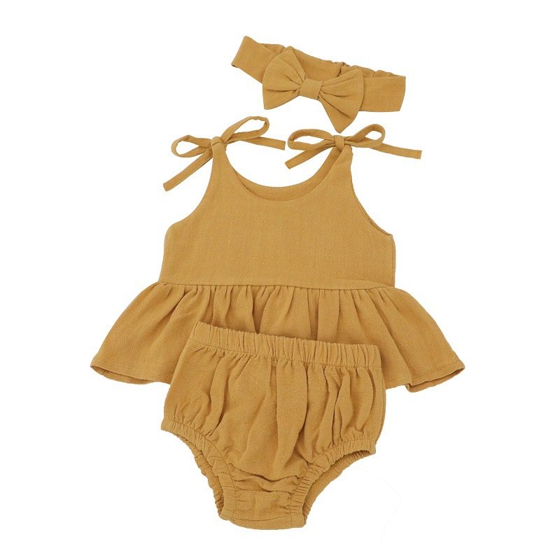 Baby Girls Simple Solid Color Round Neck Sleeveless Top And Elastic Waist With Headband Set
