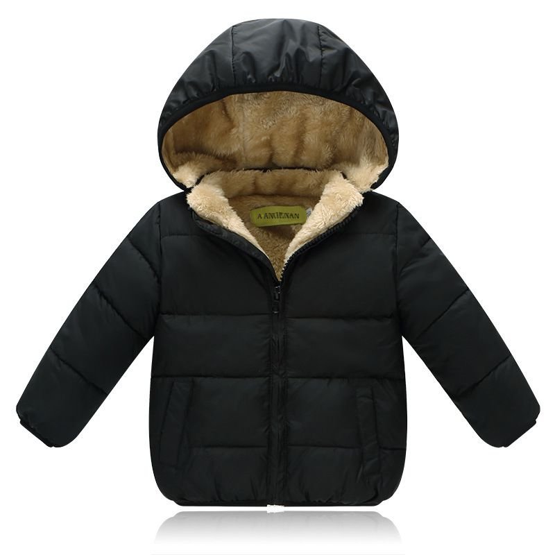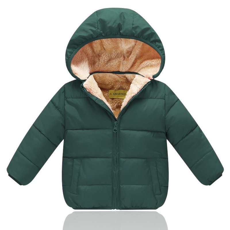 Baby Kid Pure Color Hooded Plus Velvet Thickening Jacket